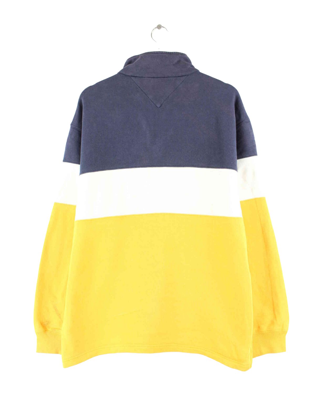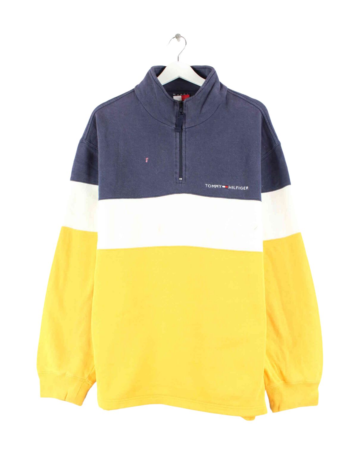 Multicolored half-zip sweater from the 90's label Tommy Hilfiger in size L. It is made from a cotton blend. We would describe the condition as 'OK' (see pictures).