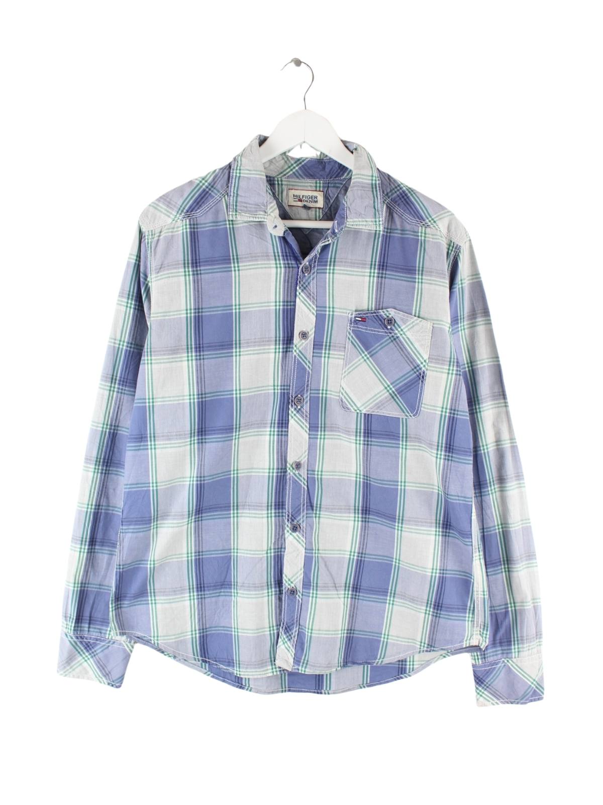 Freizeit Hemd vom Brand Tommy Hilfiger in Größe L. Es ist aus Baumwolle angefertigt und in Blau auf Lager.
