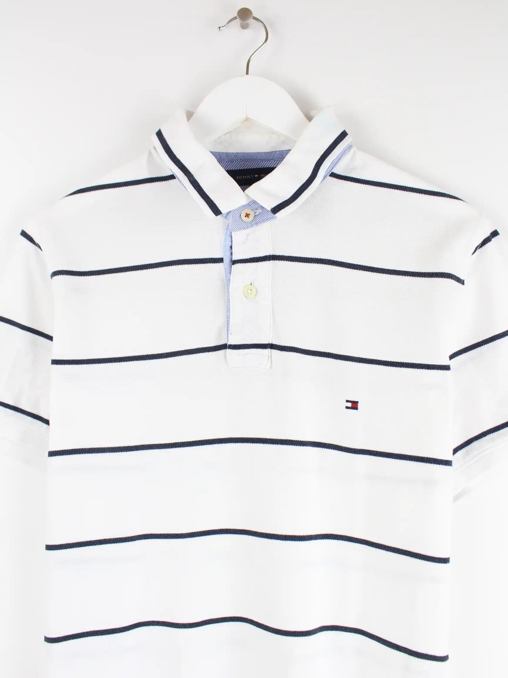 Poloshirt vom Brand Tommy Hilfiger in Größe L. Es ist aus Baumwolle produziert und in Weiß bei uns zu bekommen.