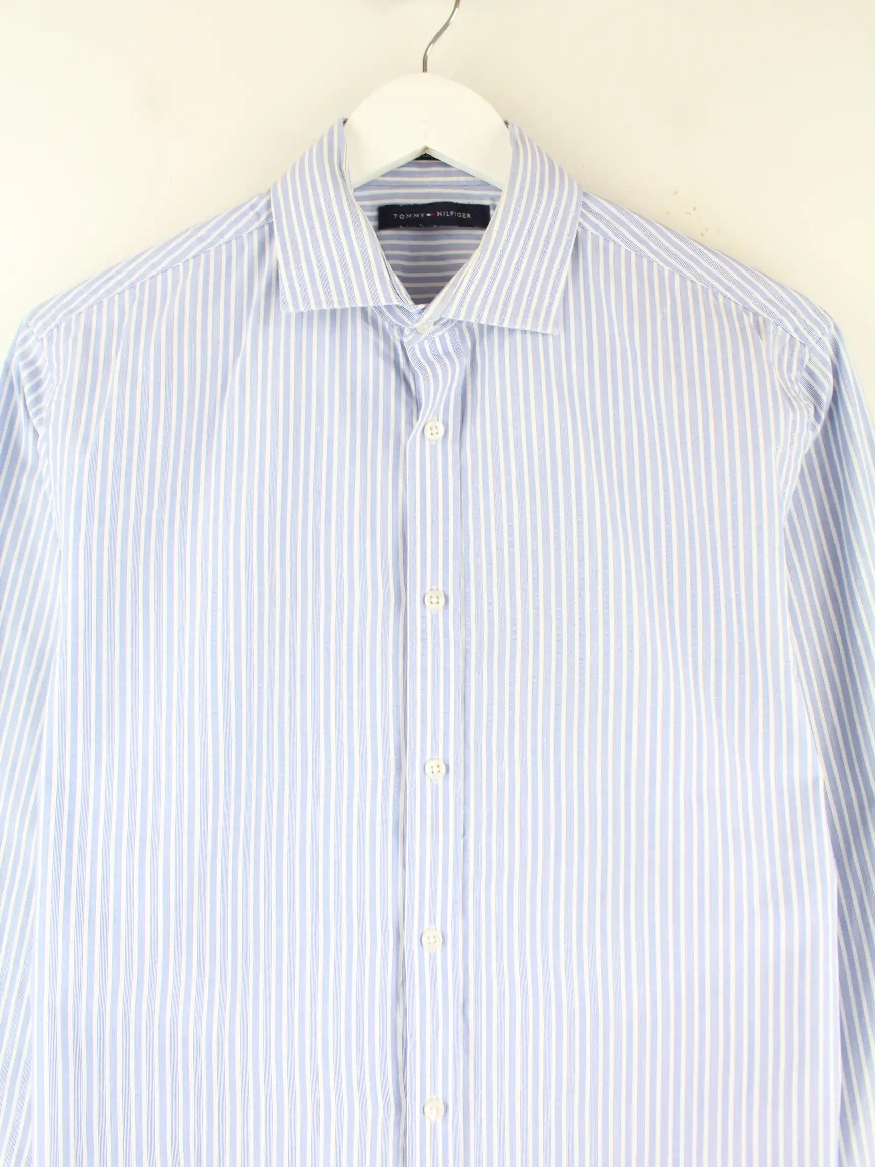 Blaues Hemd vom Label Tommy Hilfiger in Größe M. Es ist aus Baumwolle gemacht. Den Zustand würden wir als 'In Ordnung' bezeichnen (vergl. Bilder).