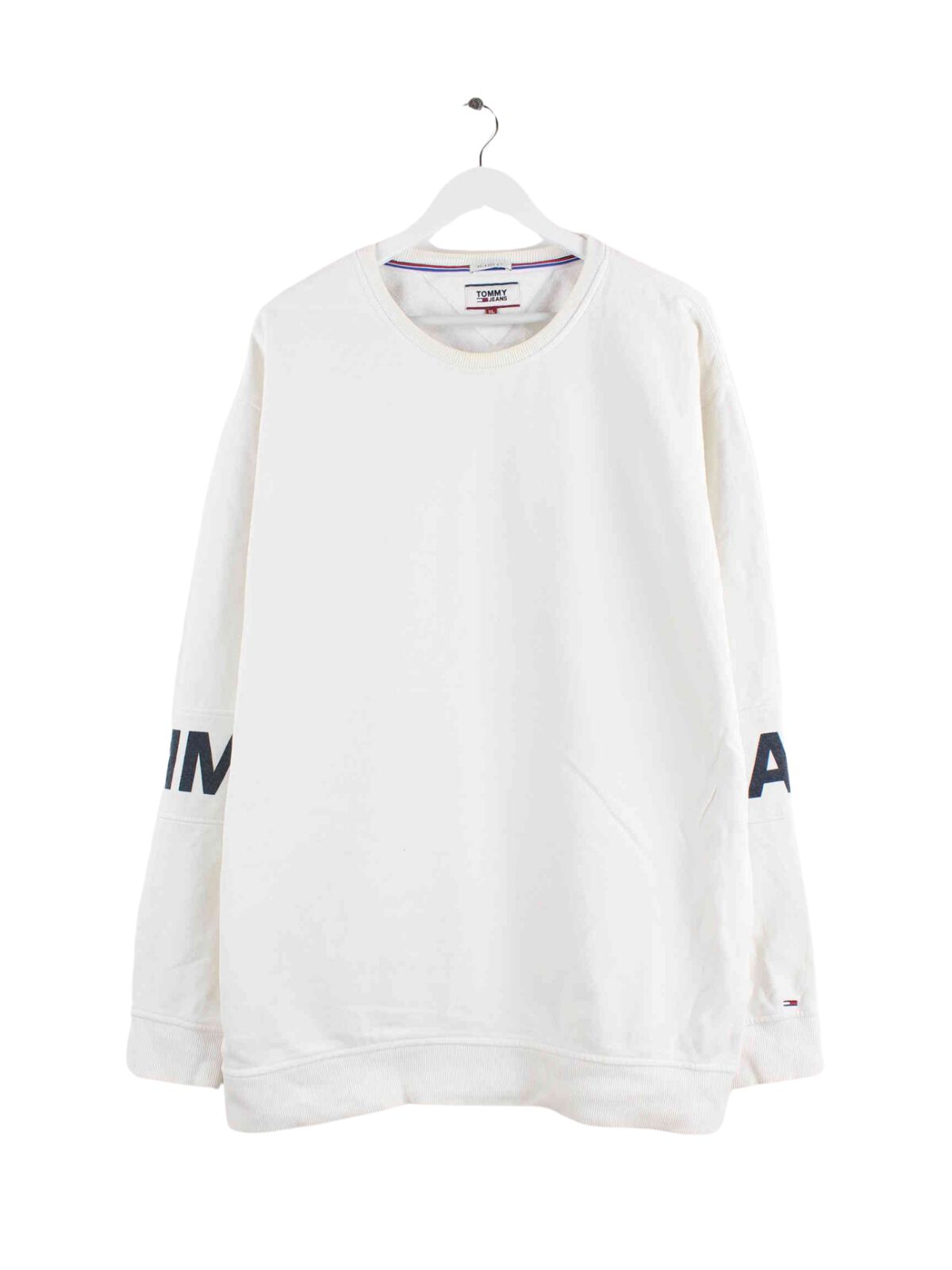 White sweater from the brand Tommy Hilfiger in size XL. It is made from a cotton blend and is in good condition in stock.