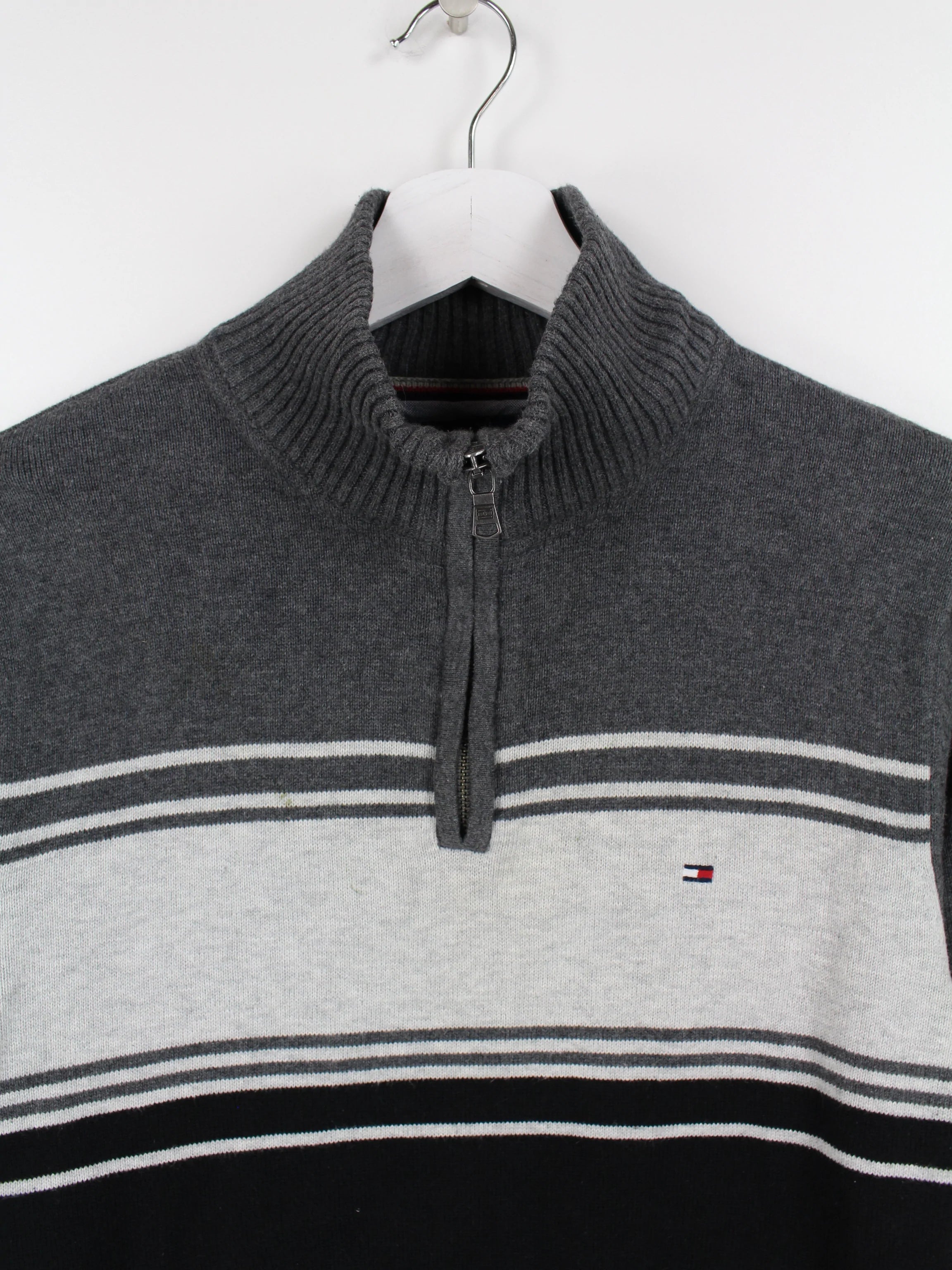 Pull zippé gris de la marque américaine Tommy Hilfiger.