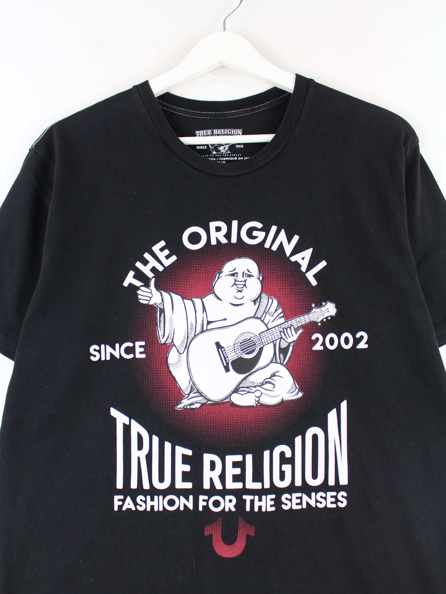 Black T-shirt from True Religion in size M. It is made of cotton and is in very good condition. With a beautiful Buddha print.