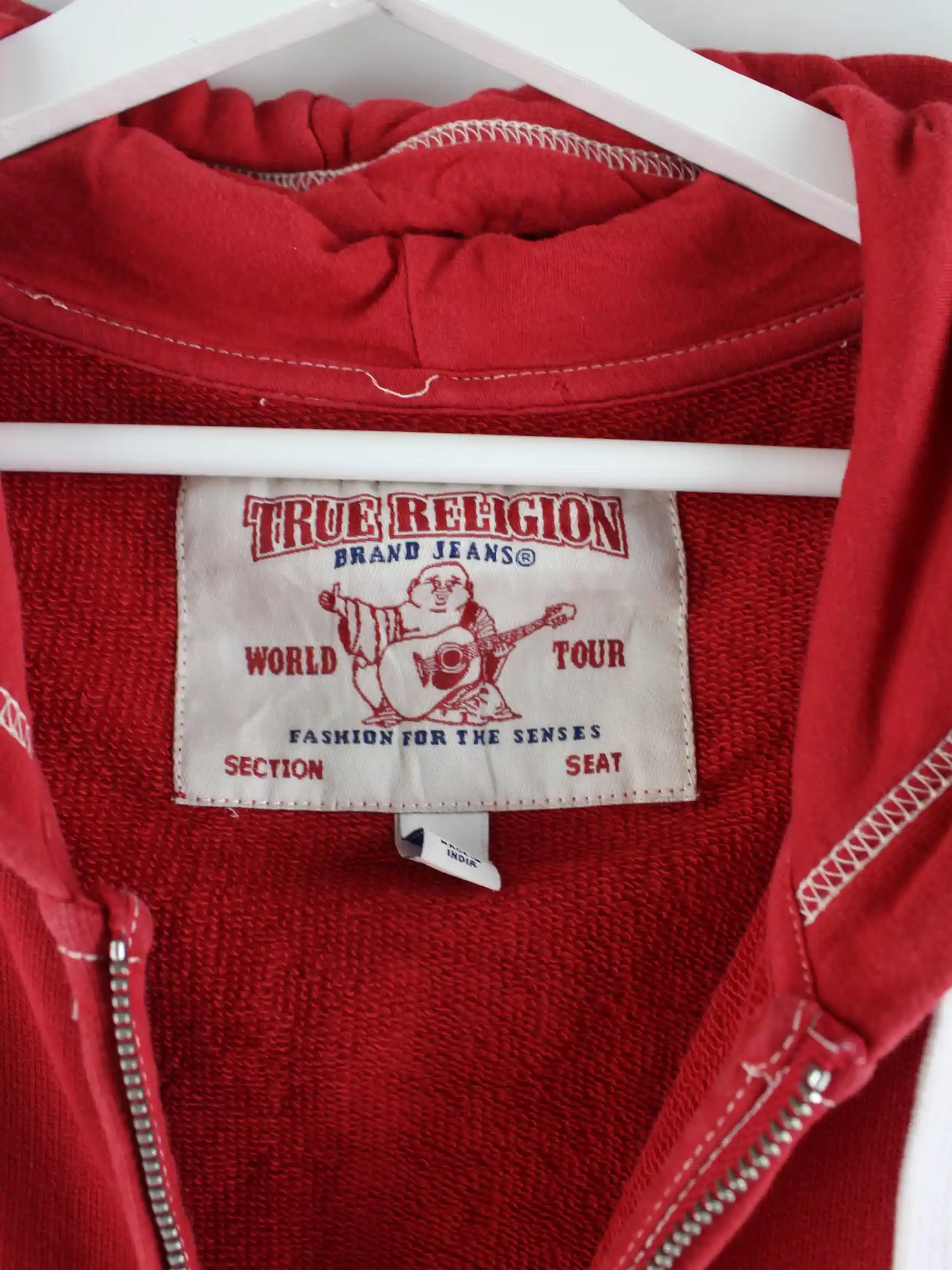 Hoodie von True Religion mit durchgehendem Reißverschluß in Größe XXL aus Anfang der 2000'er. Er ist aus einer Baumwollmischung hergestellt und in Rot auf Lager.