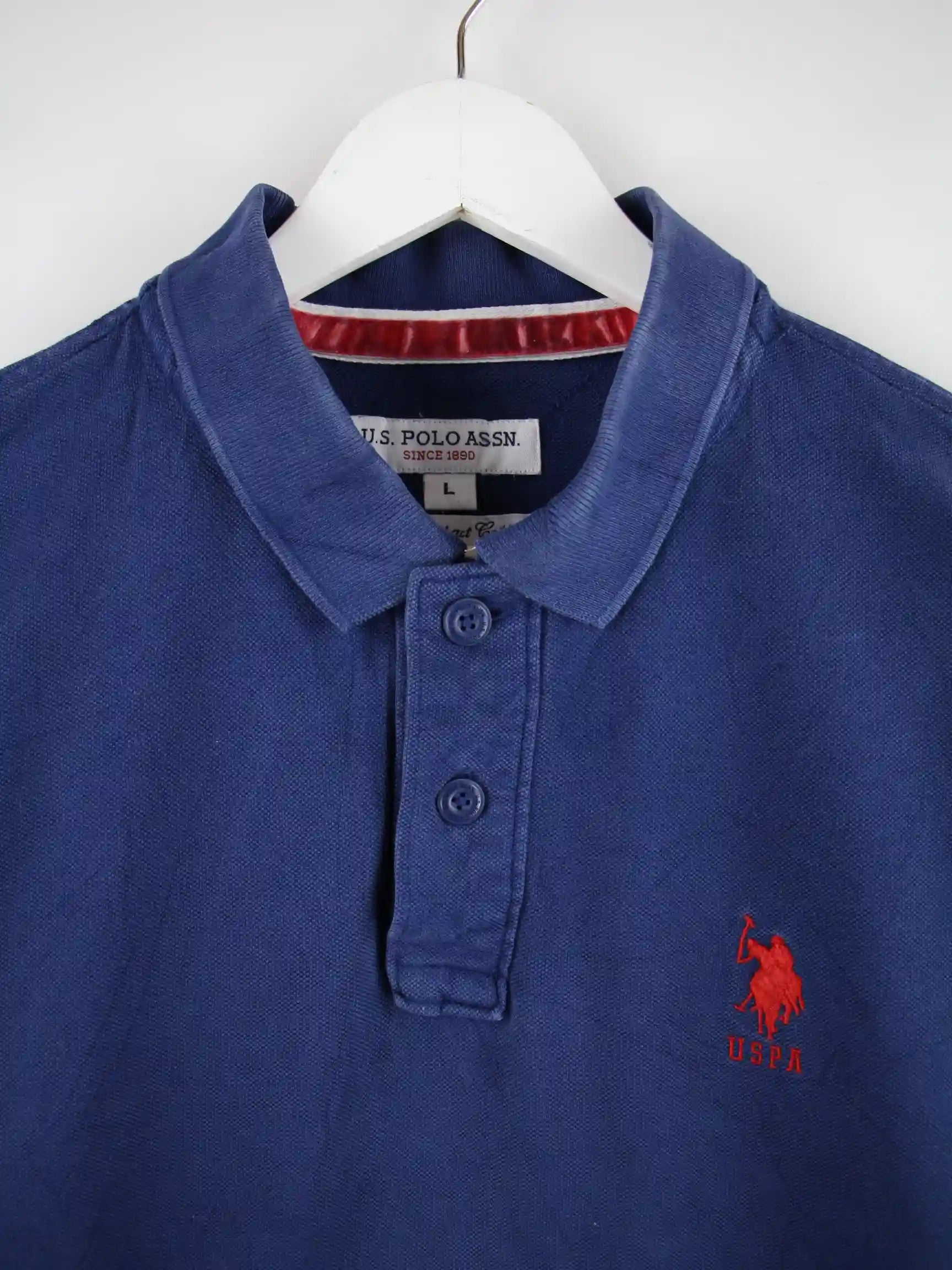 Poloshirt der Marke U.S. Polo ASSN. in Größe L. Es ist aus Baumwolle gemacht und in Blau im Angebot.