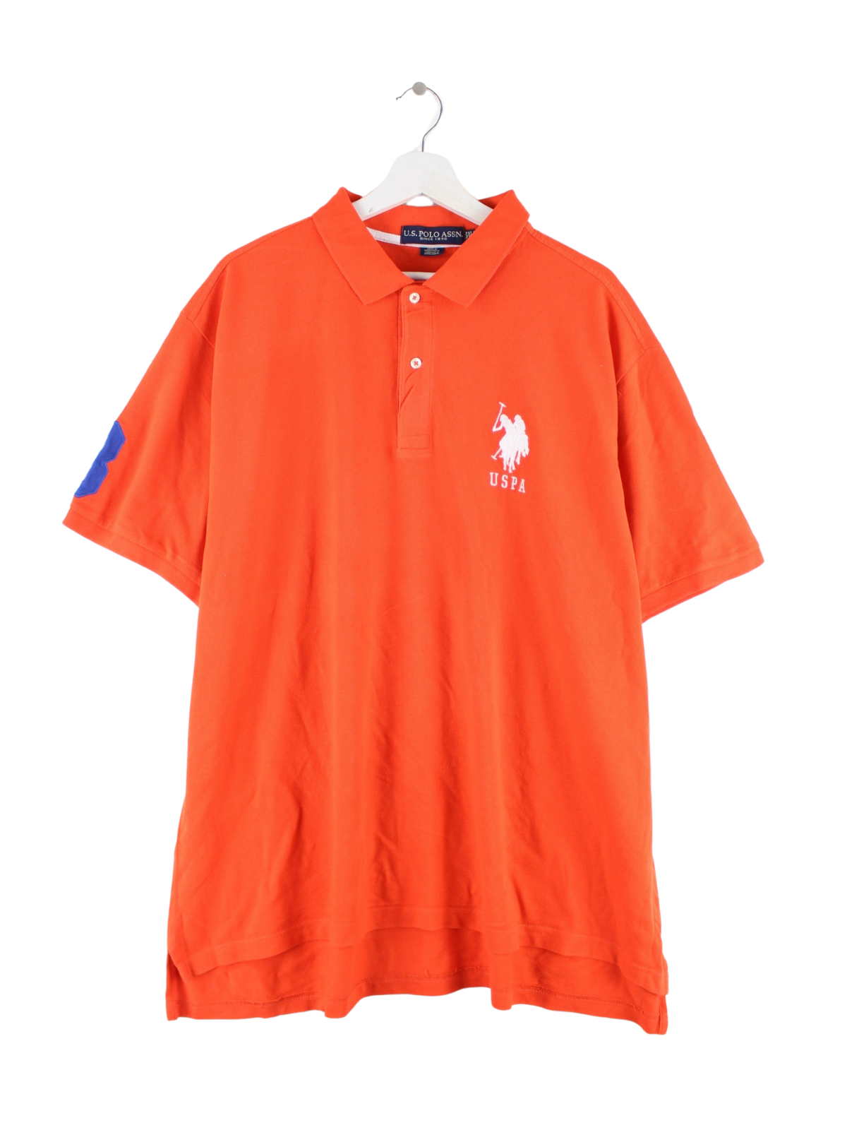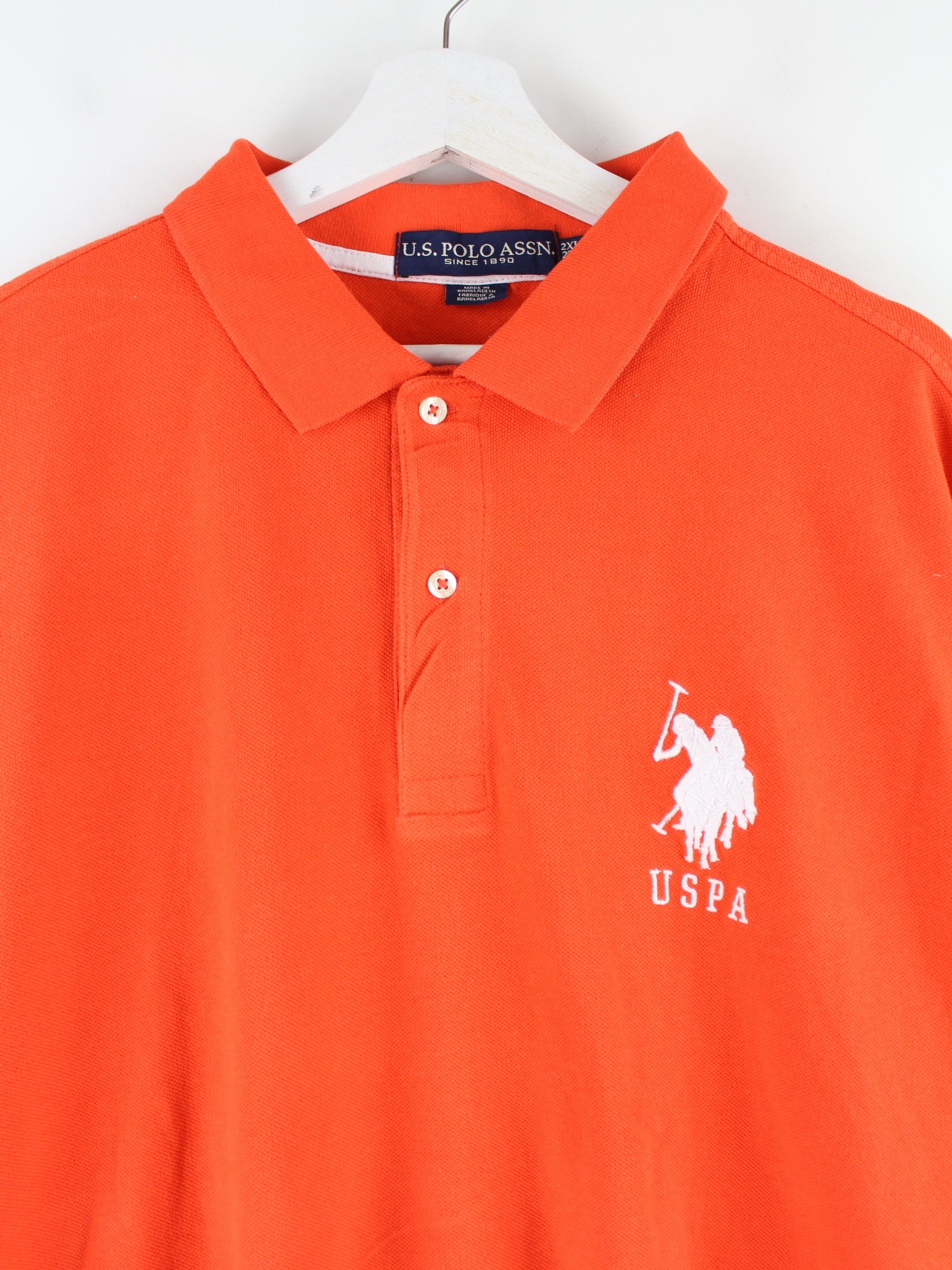 Orange polo shirt with embroidery from the brand US Polo ASSN. in size XXL. It is made of cotton and is available in very good condition.