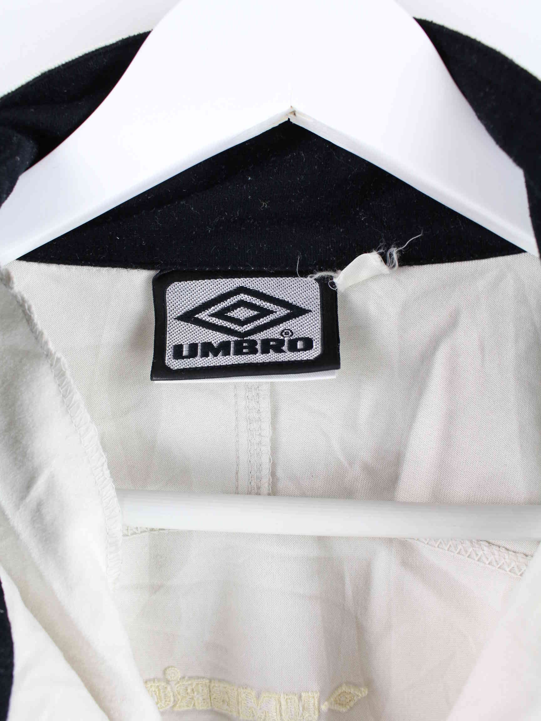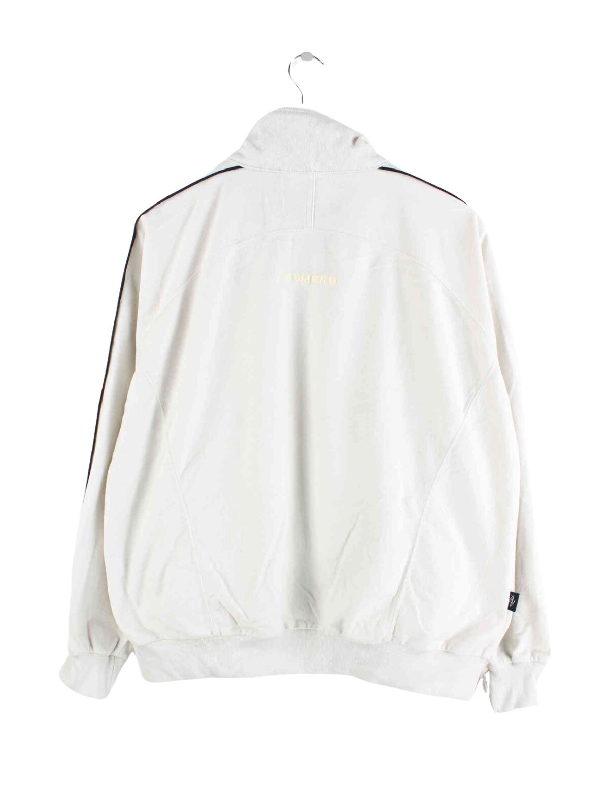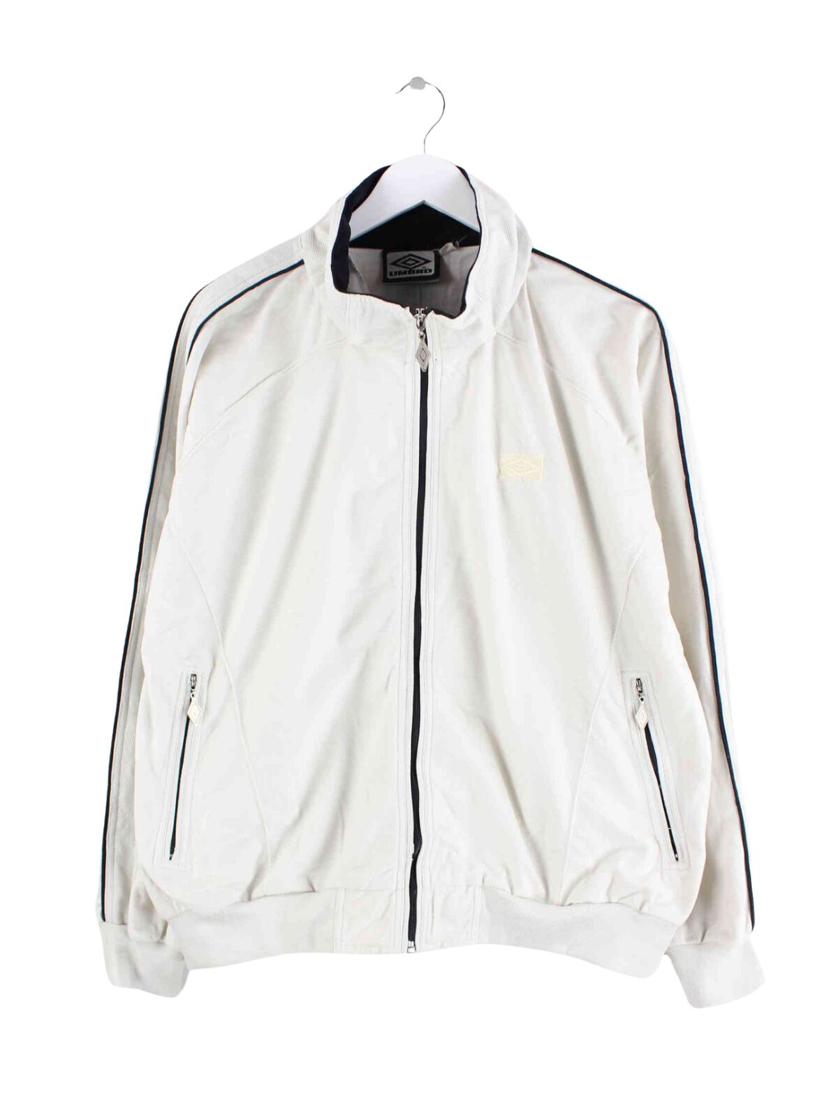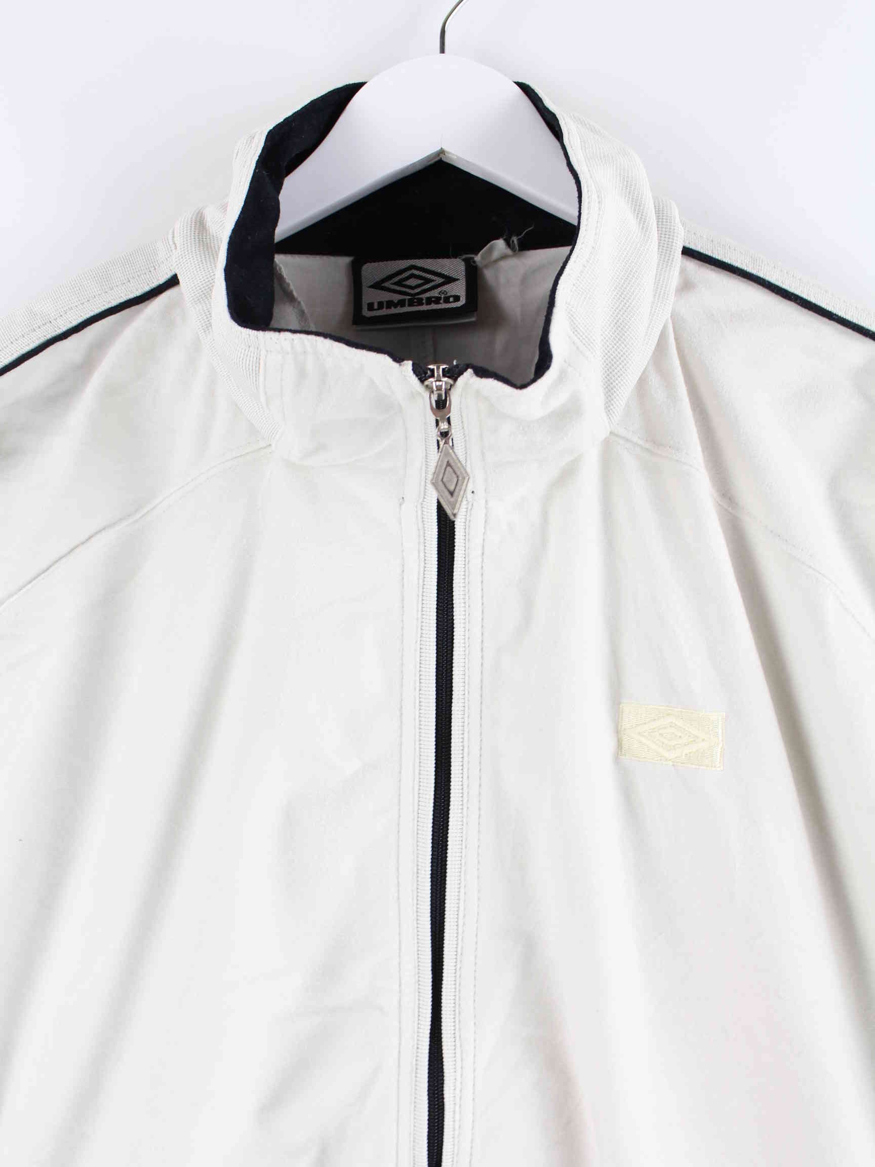 Training jacket from the Umbro label in size S from the 90s. It is made of synthetic and comes in beige in stock.