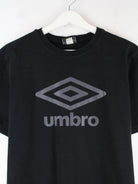 Schwarzes T-Shirt der Brand Umbro in Größe M. Es ist aus Baumwolle und in sehr gutem Zustand bei uns vorrätig. Mit tollem Logo Print.