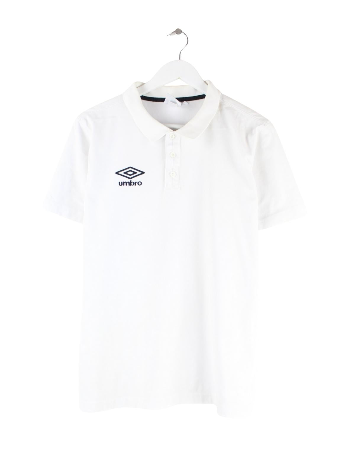 Poloshirt der Brand Umbro in Größe L. Es ist aus Baumwolle angefertigt und in Weiß vorrätig.