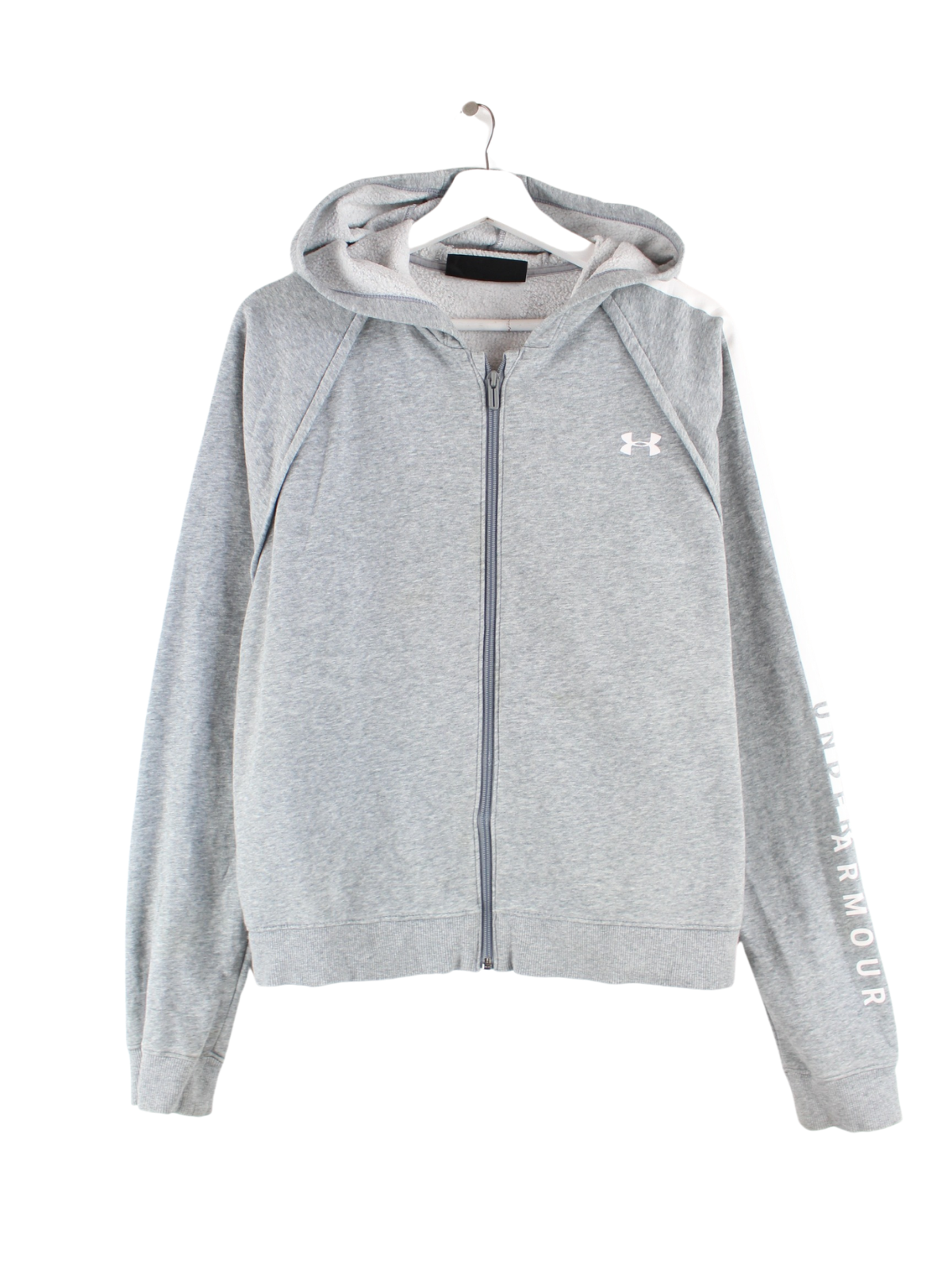 Hoodie from the label Under Armour with zip in size XL. It is made from a cotton blend and is available in grey.