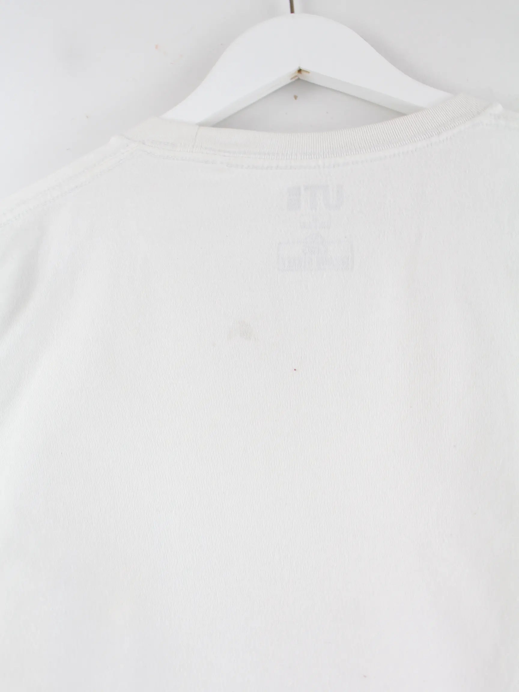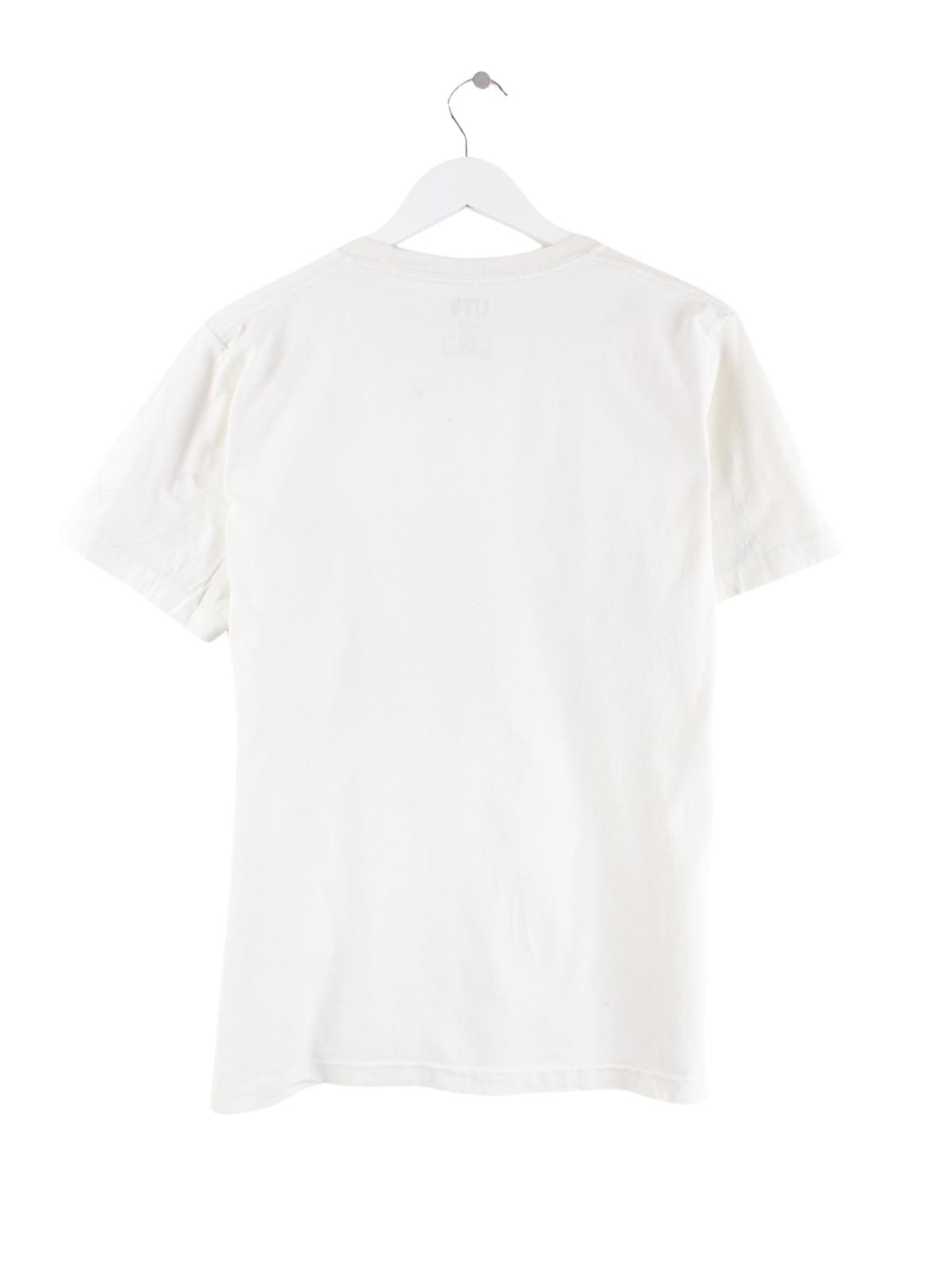 T-Shirt aus dem Hause Uniqlo in Größe M. Es ist aus Baumwolle hergestellt und in Weiß bei uns zu bekommen. Mit schickem Street Print.