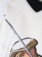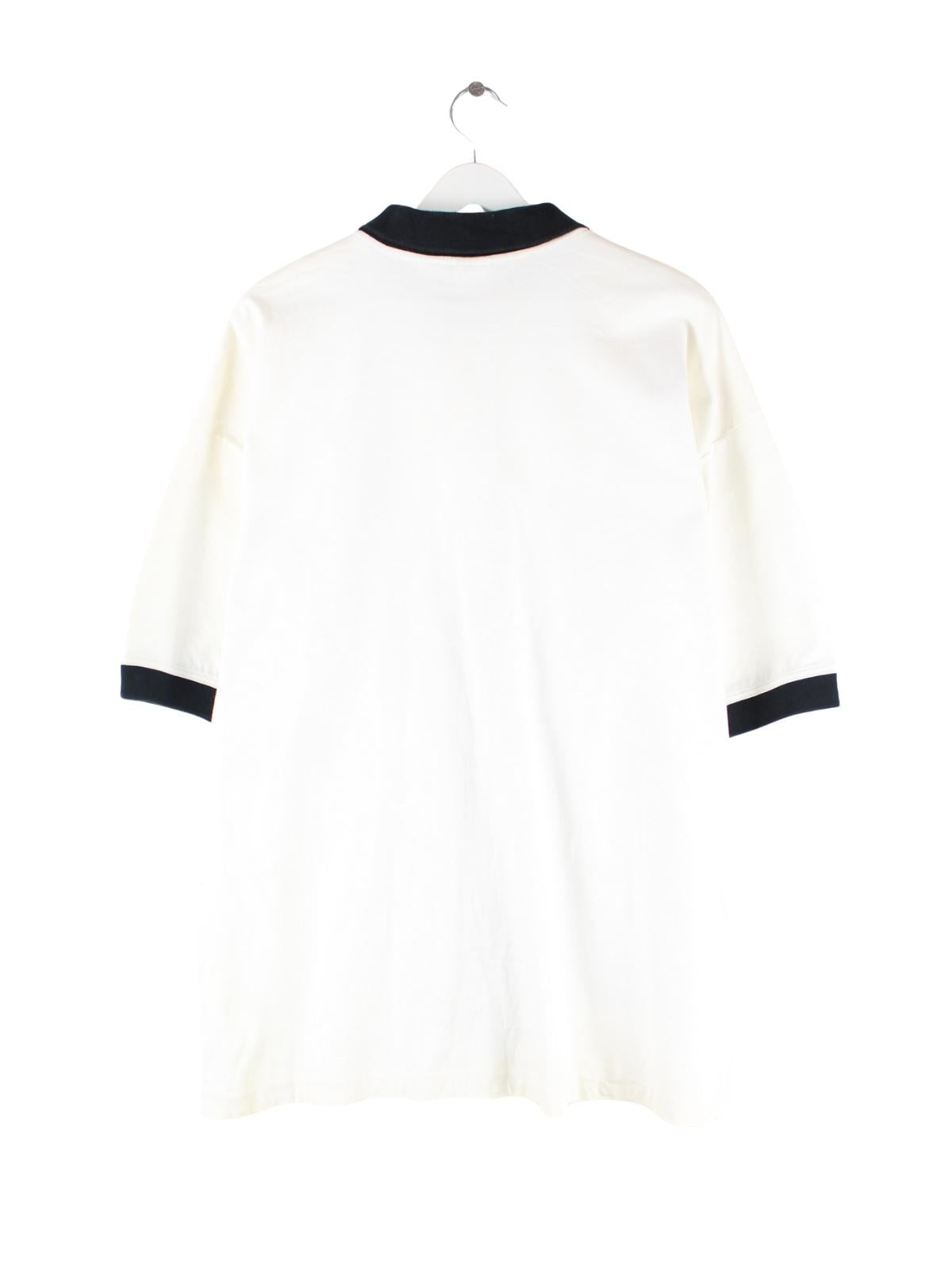 Weißes Vintage Poloshirt in Größe XL. Es ist aus Baumwolle und in gutem Zustand in Stock. Mit chiquem Golf Print.