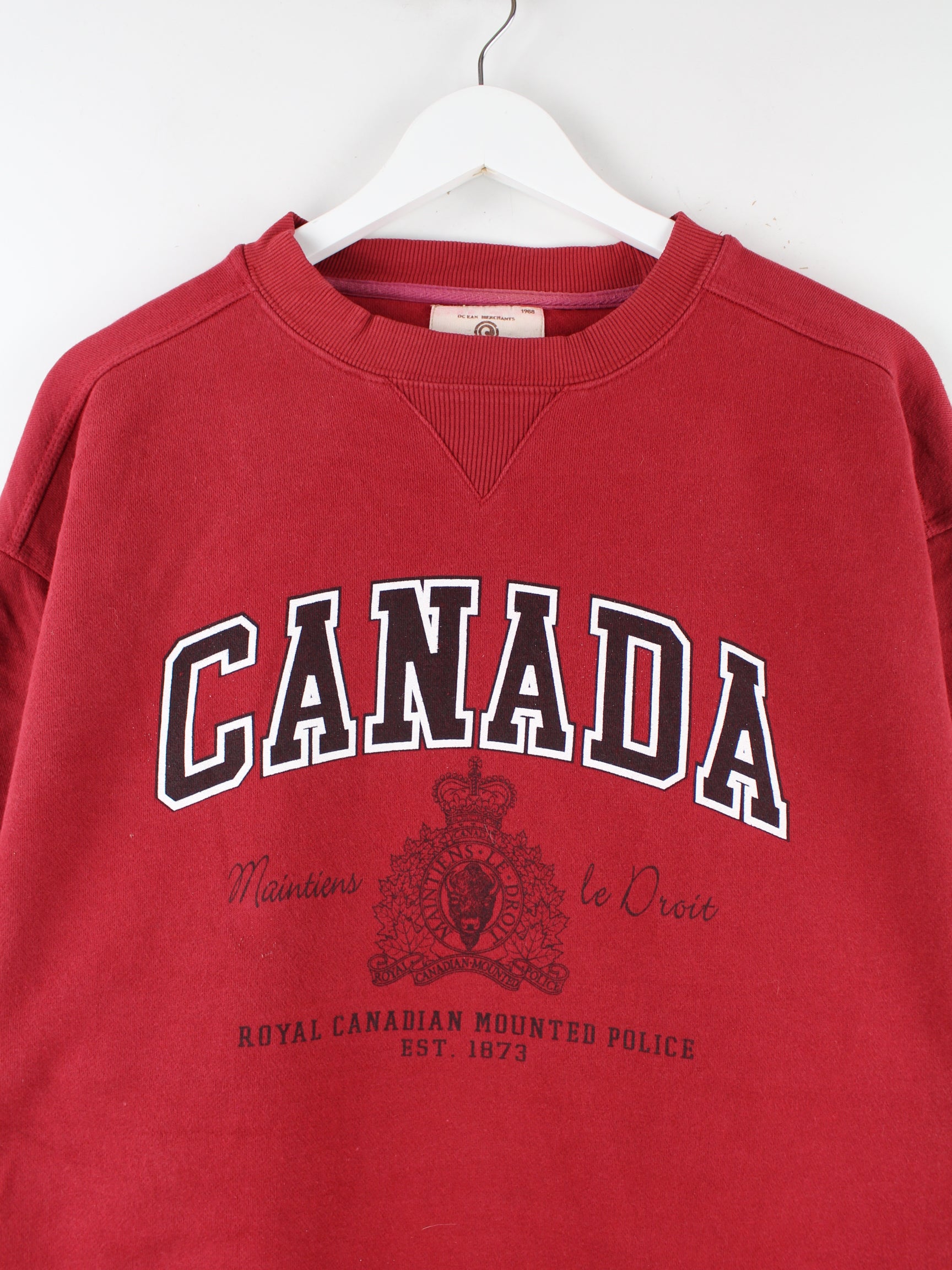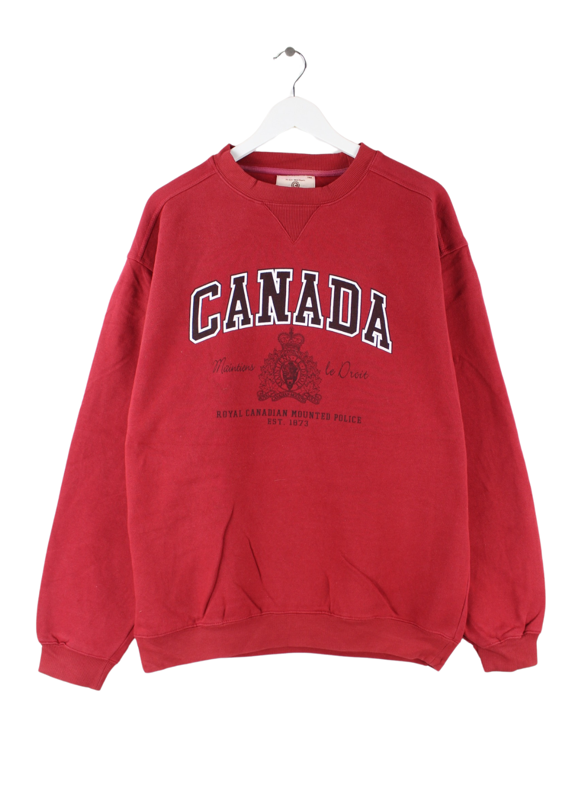 Vintage Sweater in Größe L. Er ist aus einer Baumwollmischung gefertigt und in Rot lieferbar. Mit chiquem Canada Print.