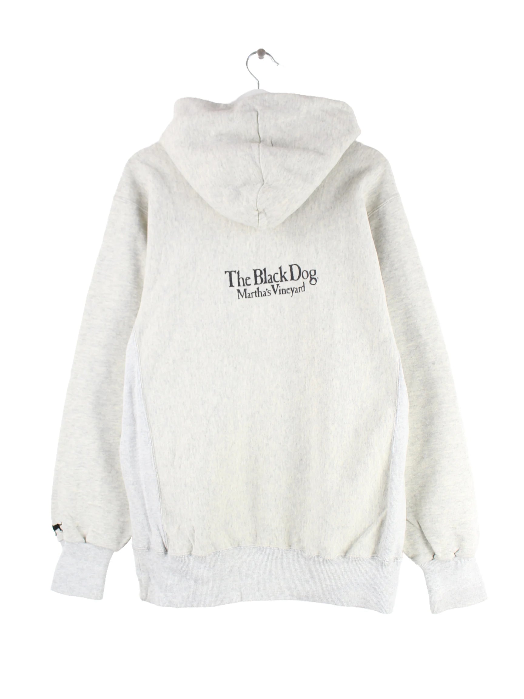 Vintage Hoodie in Größe L. Er ist aus einer Baumwollmischung gefertigt und in Grau in Stock. Mit schickem Dog Print.