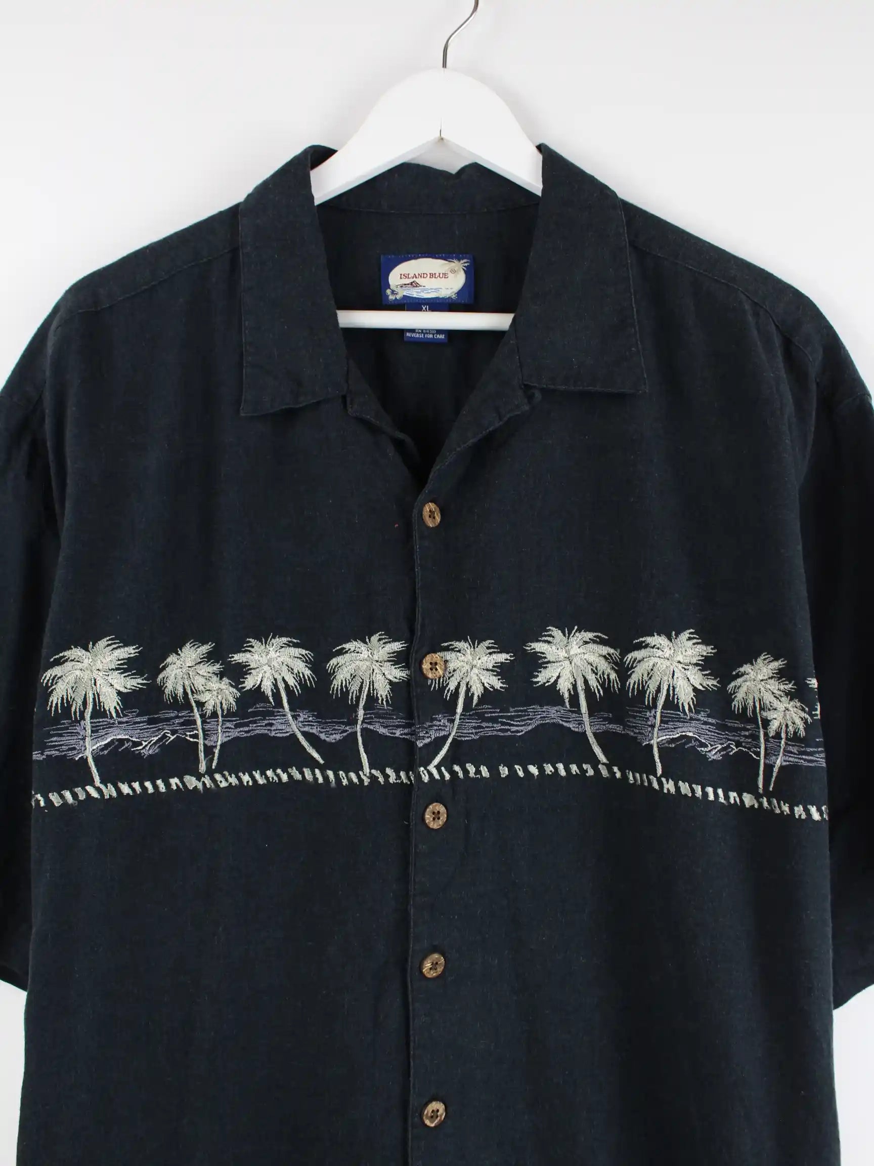 Schwarzes Vintage Freizeit Hemd in Größe XL. Es ist aus Leinen hergestellt und in sehr gutem Zustand im Angebot.