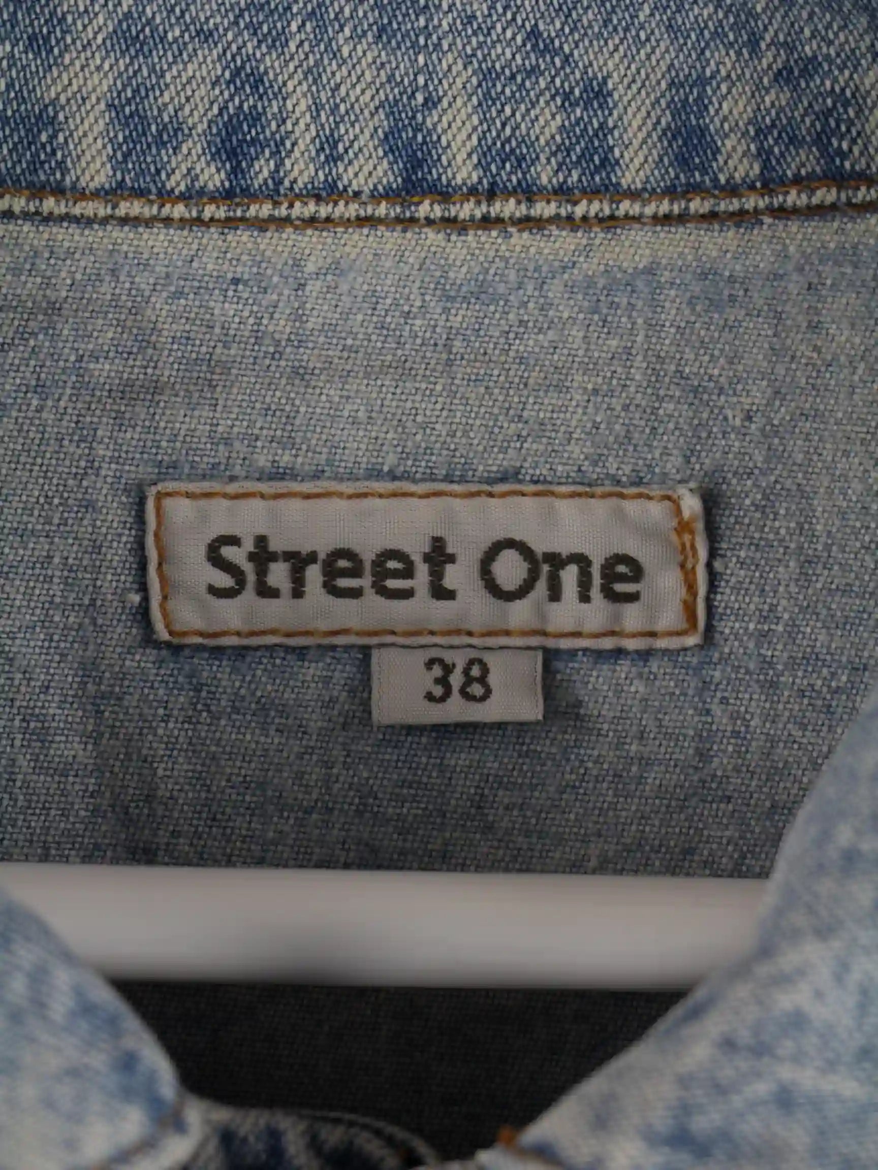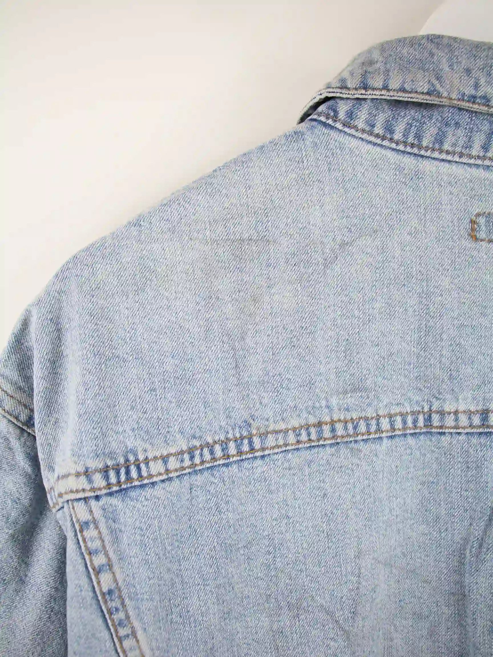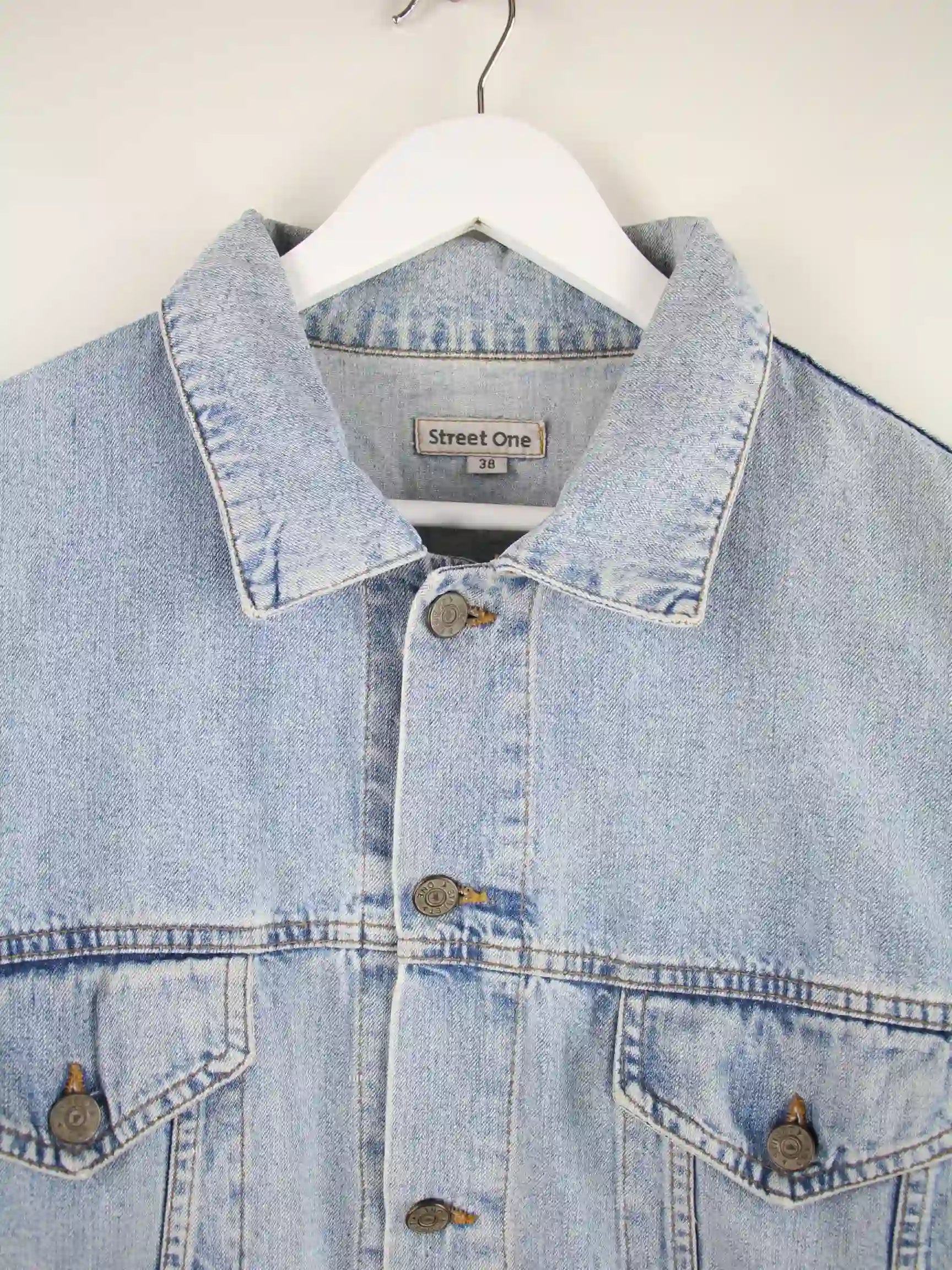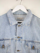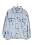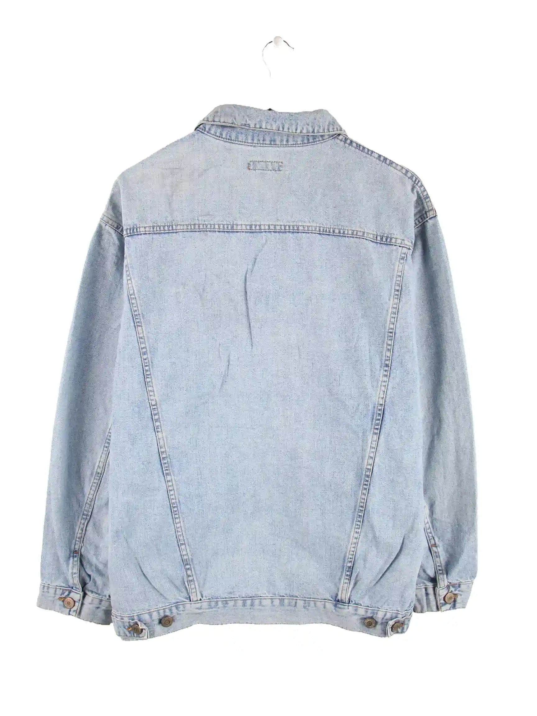 Vintage Jacke in Größe L. Sie ist aus Baumwolle produziert und in Blau vorrätig.