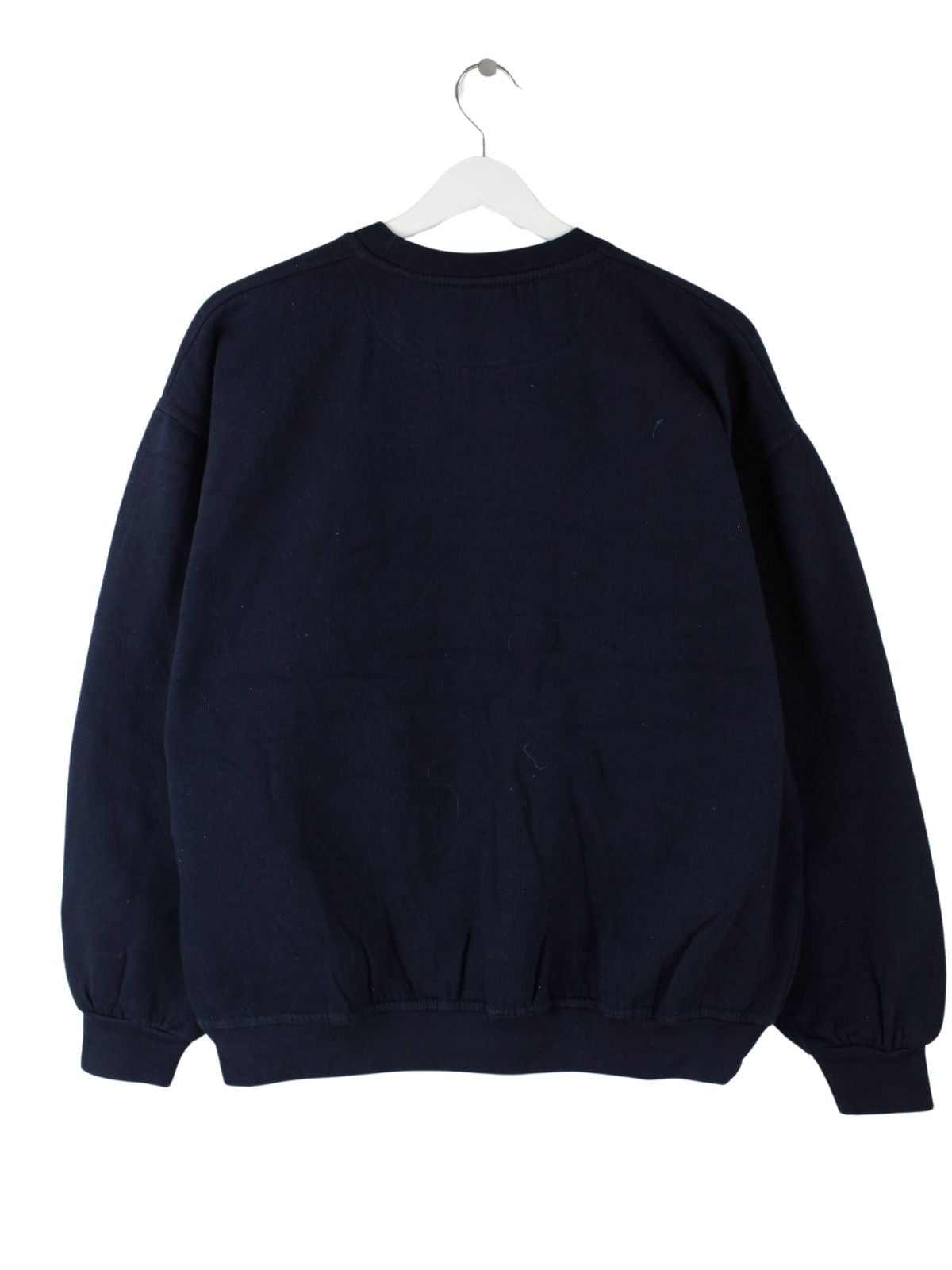 Blauer Vintage Sweater mit Stickereien in Größe S. Er ist aus einer Baumwollmischung gemacht und in sehr gutem Zustand lieferbar.