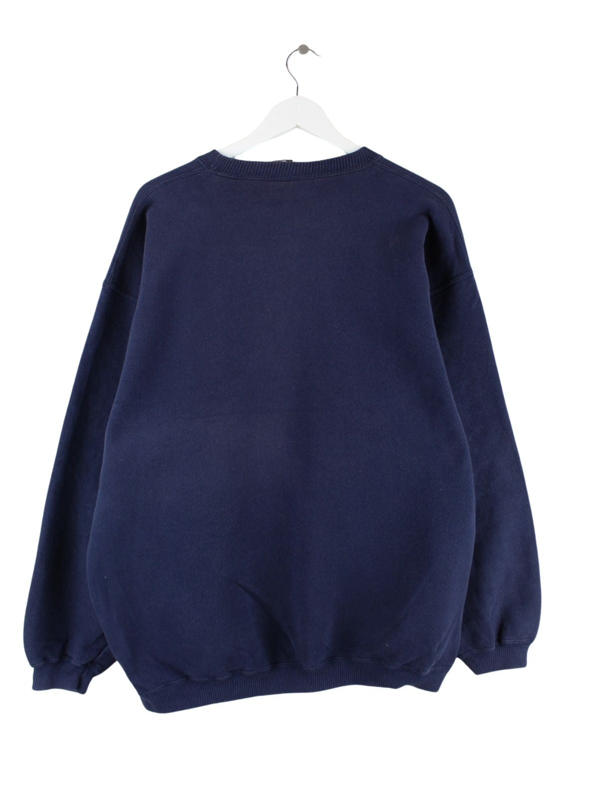 Vintage Sweater mit gesticktem Logo in Größe L. Er ist aus einer Baumwollmischung gemacht und in Blau im Bestand.