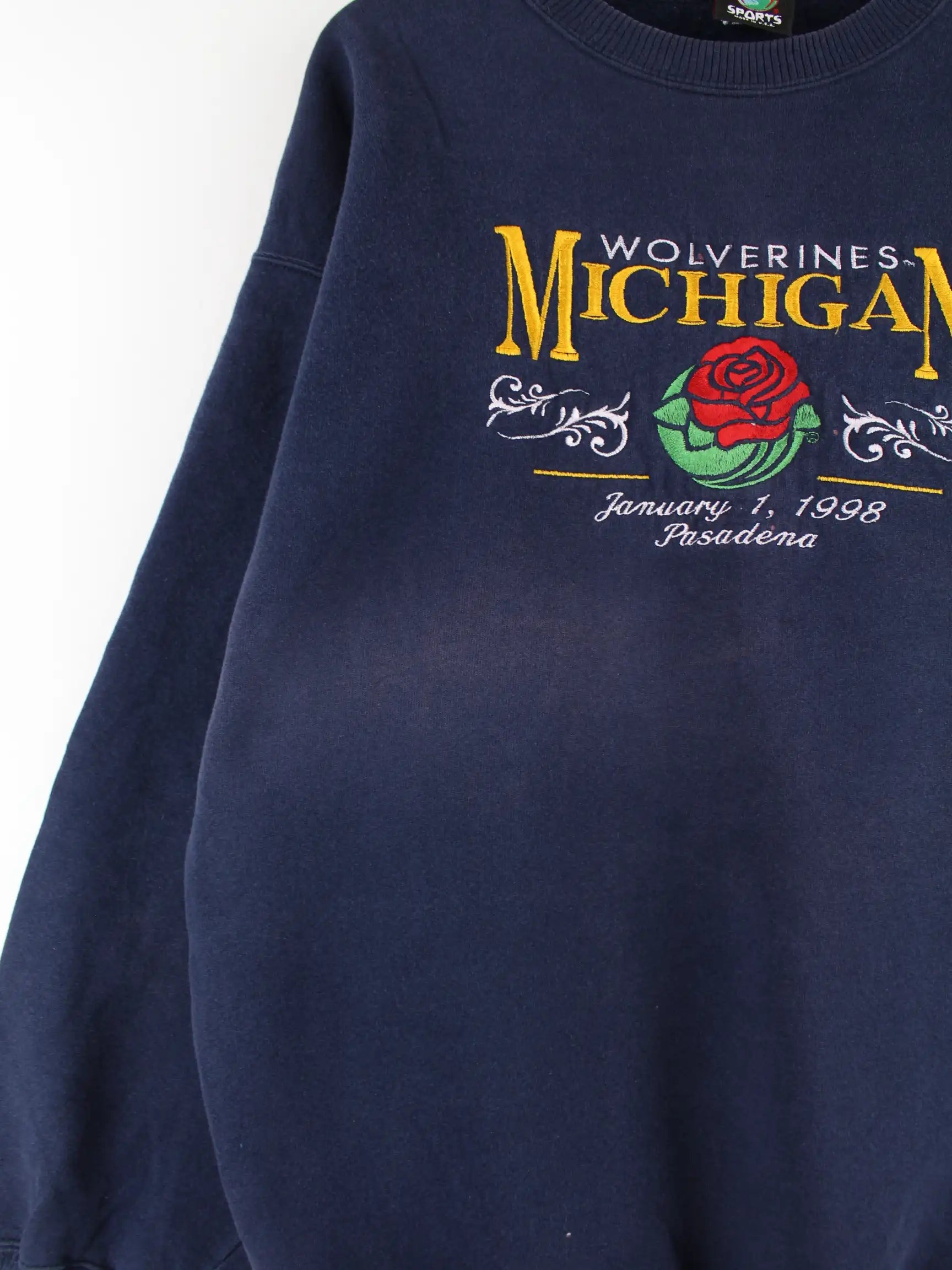Vintage 00s Michigan Wolverines Embroidered Sweater Blau L