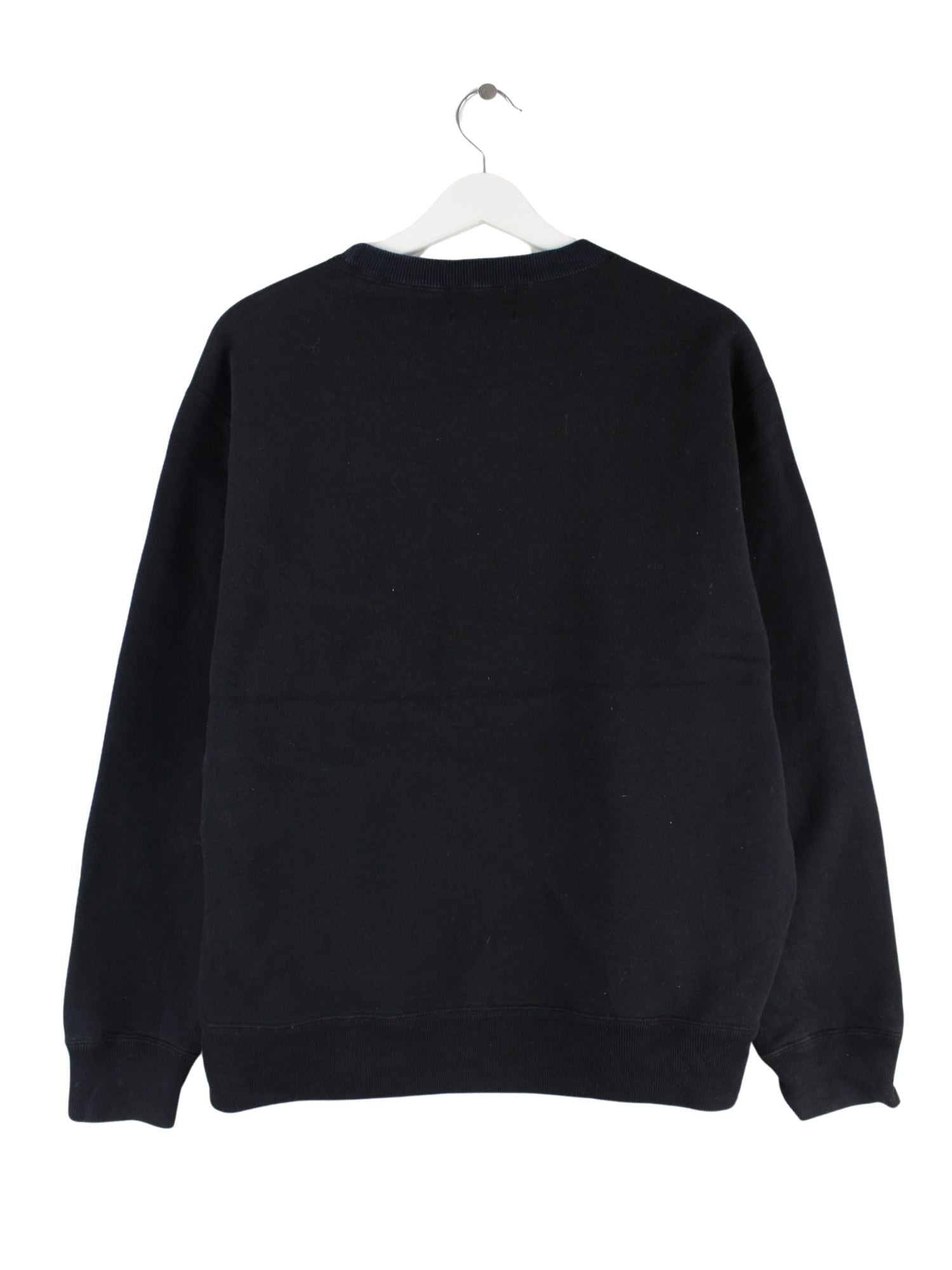 Schwarzer Vintage Sweater mit gesticktem Logo in Größe S. Er ist aus einer Baumwollmischung gefertigt und in sehr gutem Zustand vorrätig.