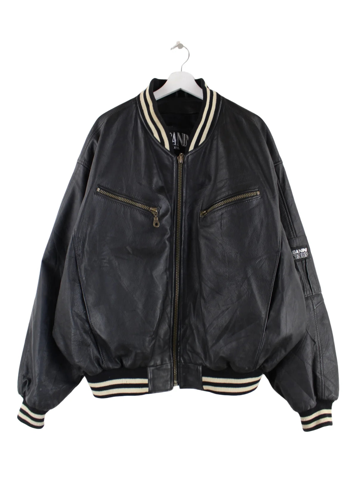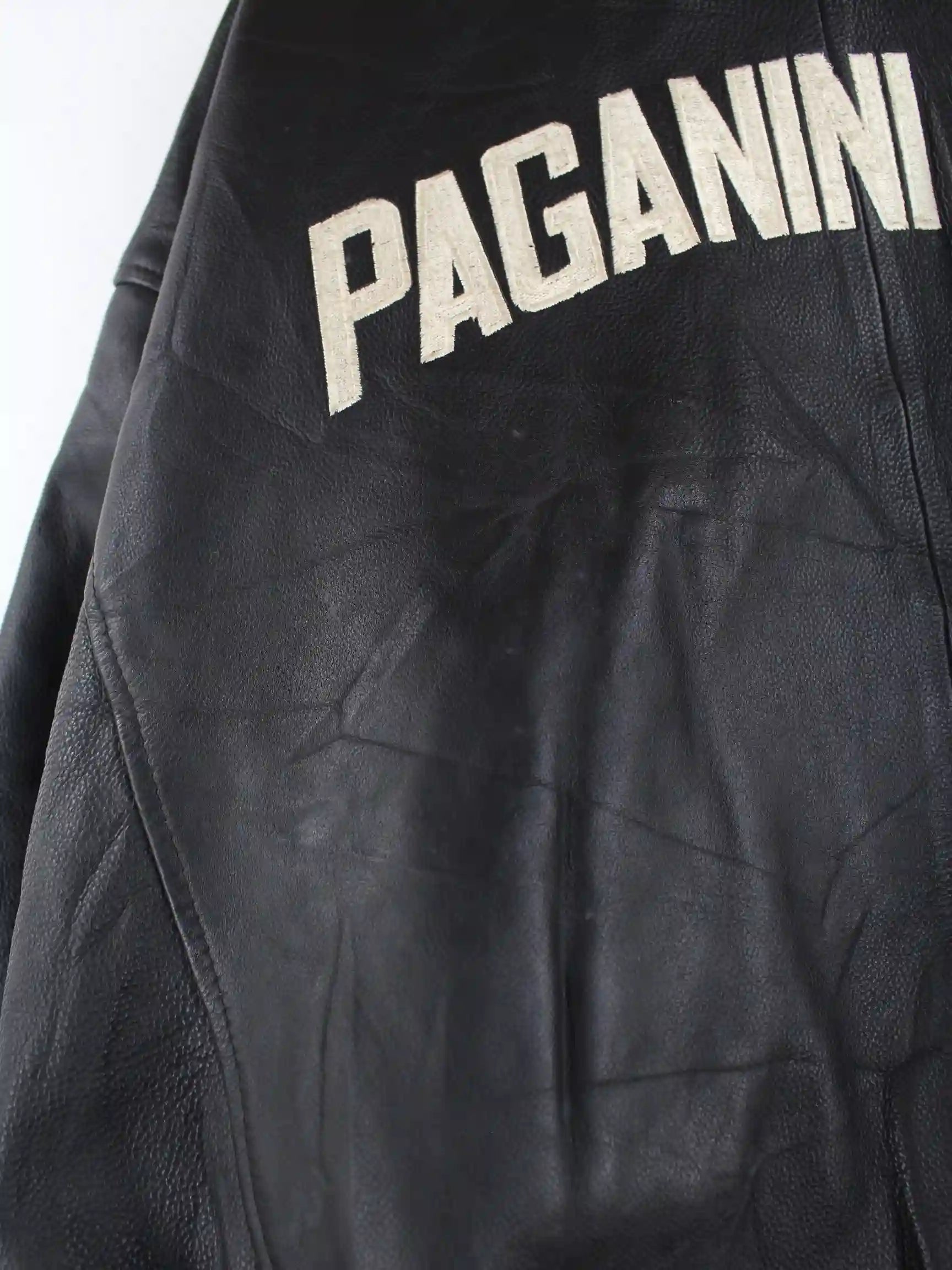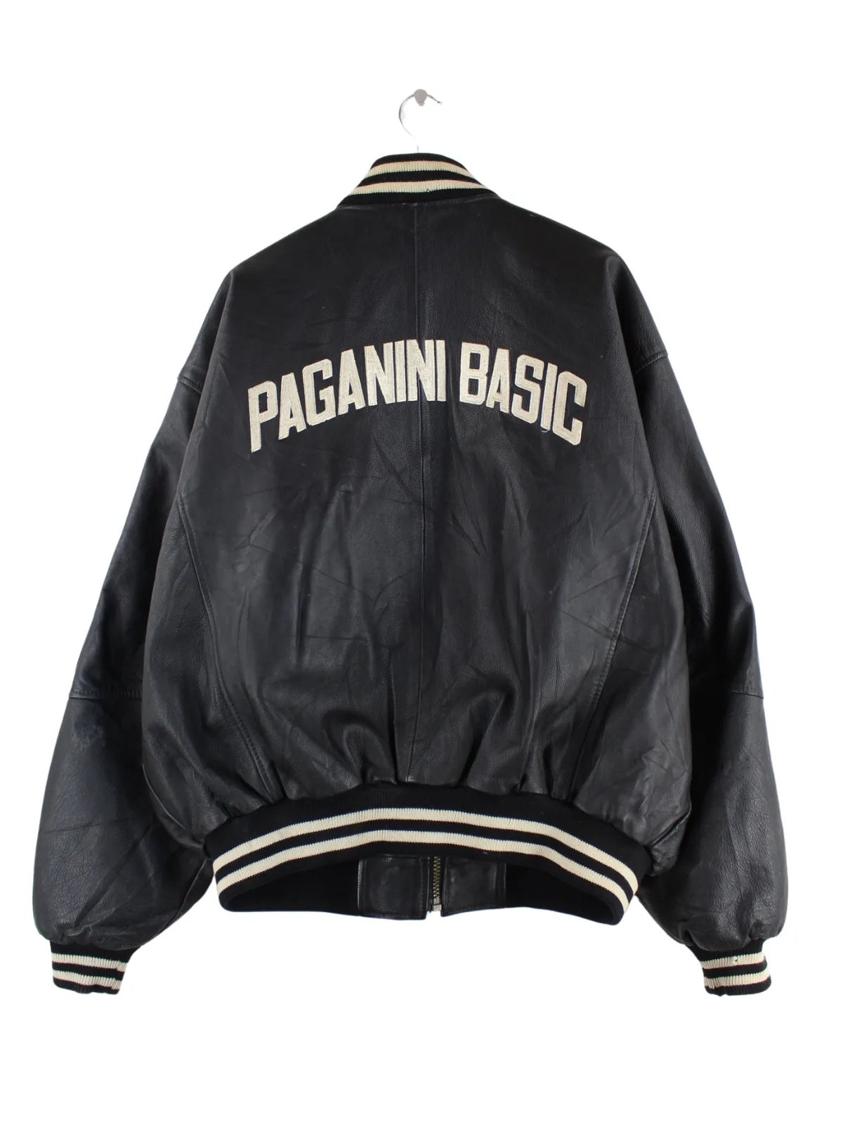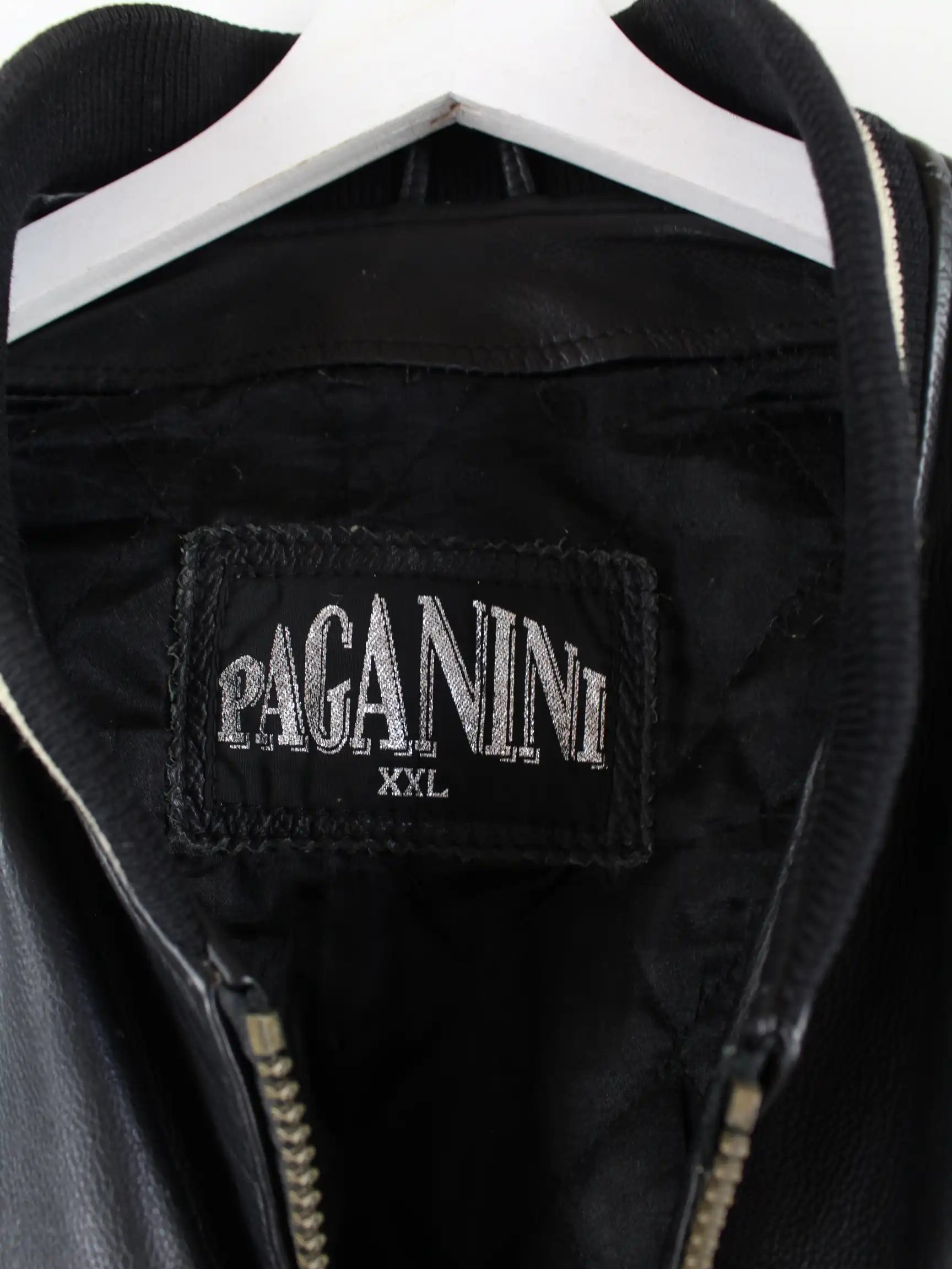 Vintage 00s Paganini Embroidered Leder Bomber Jacke Schwarz XXL