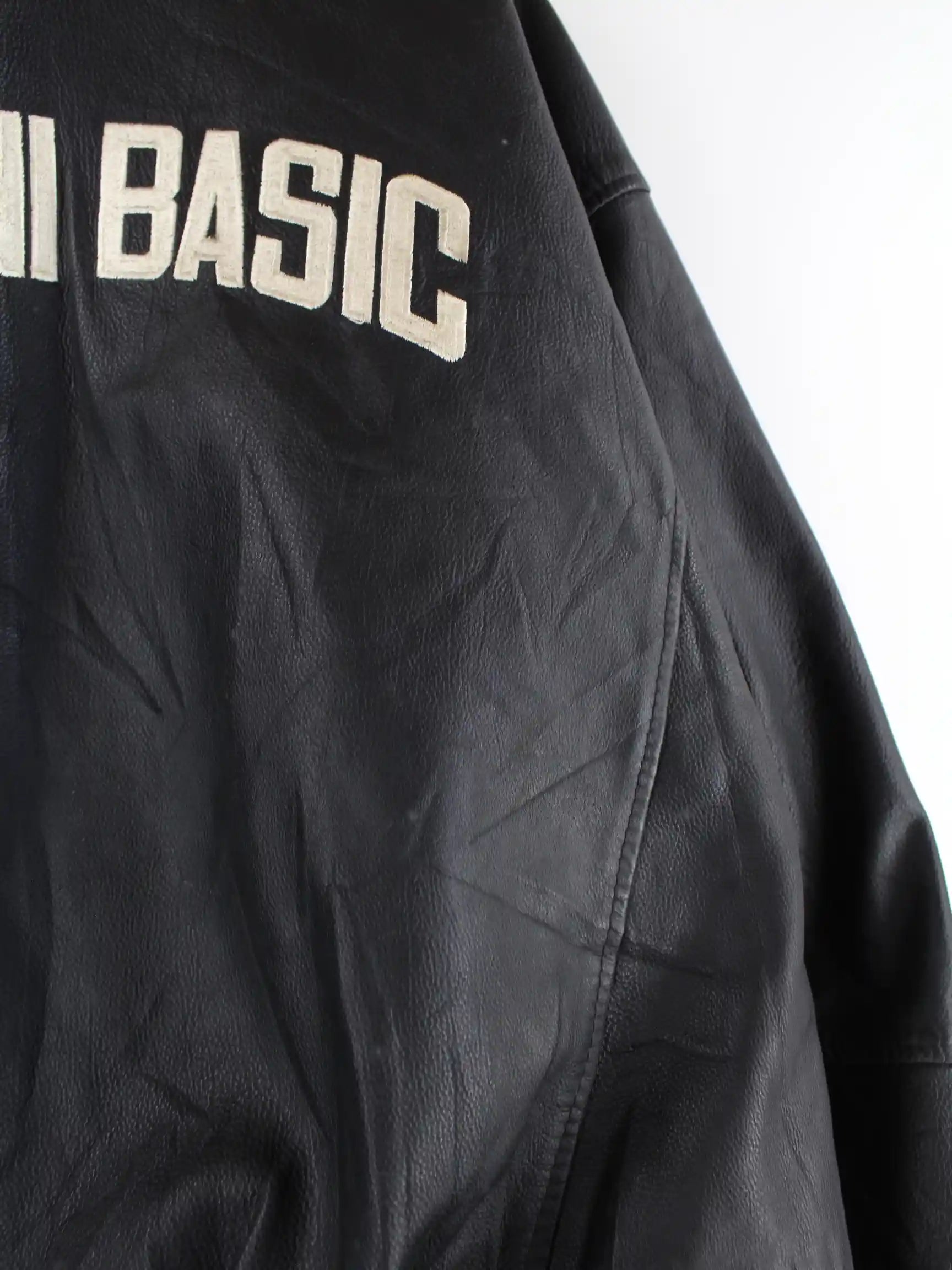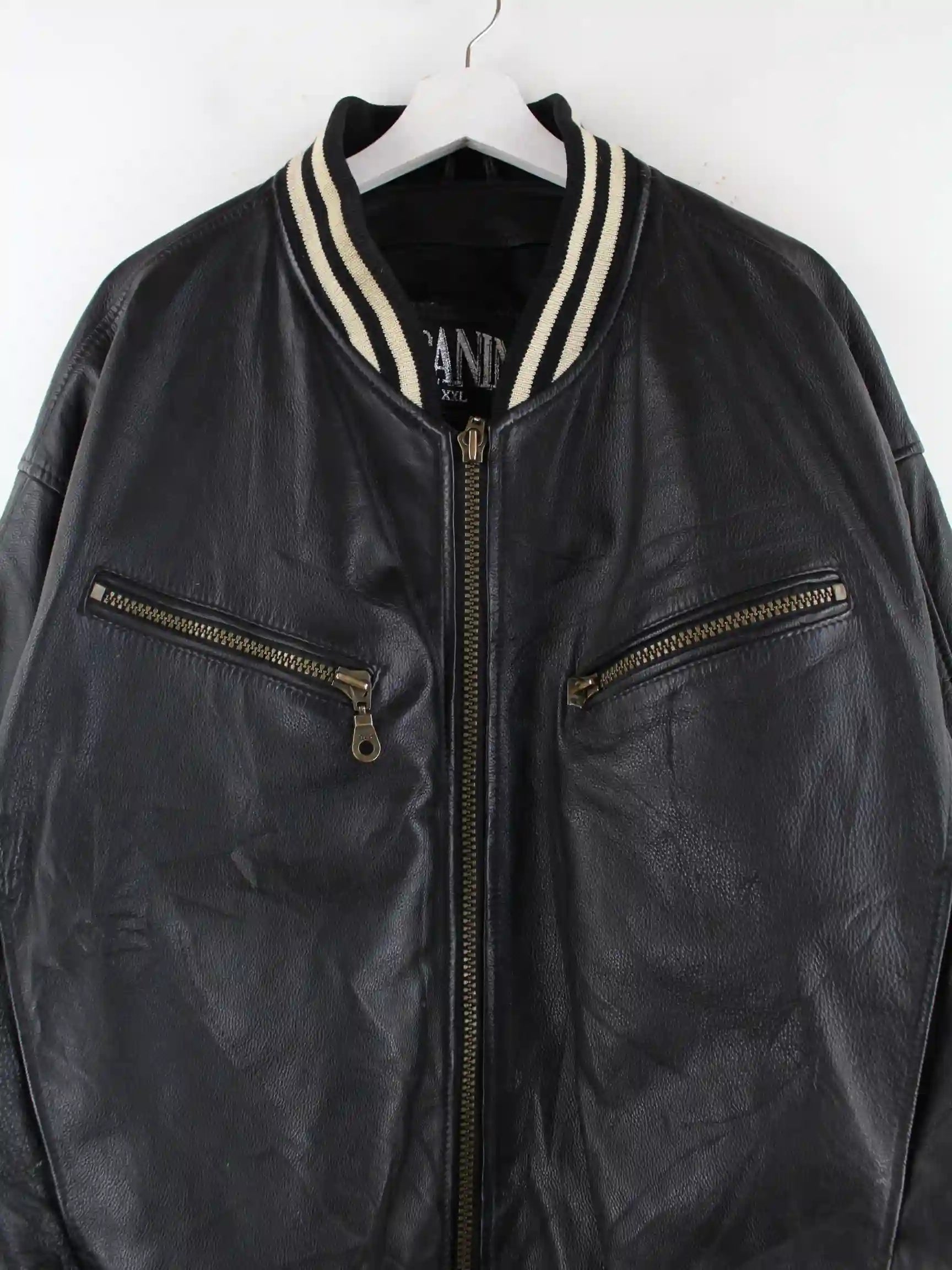 Schwarze Vintage Jacke mit Stick in Größe XXL. Sie ist aus Leder produziert und in gutem Zustand bei uns zu bekommen.