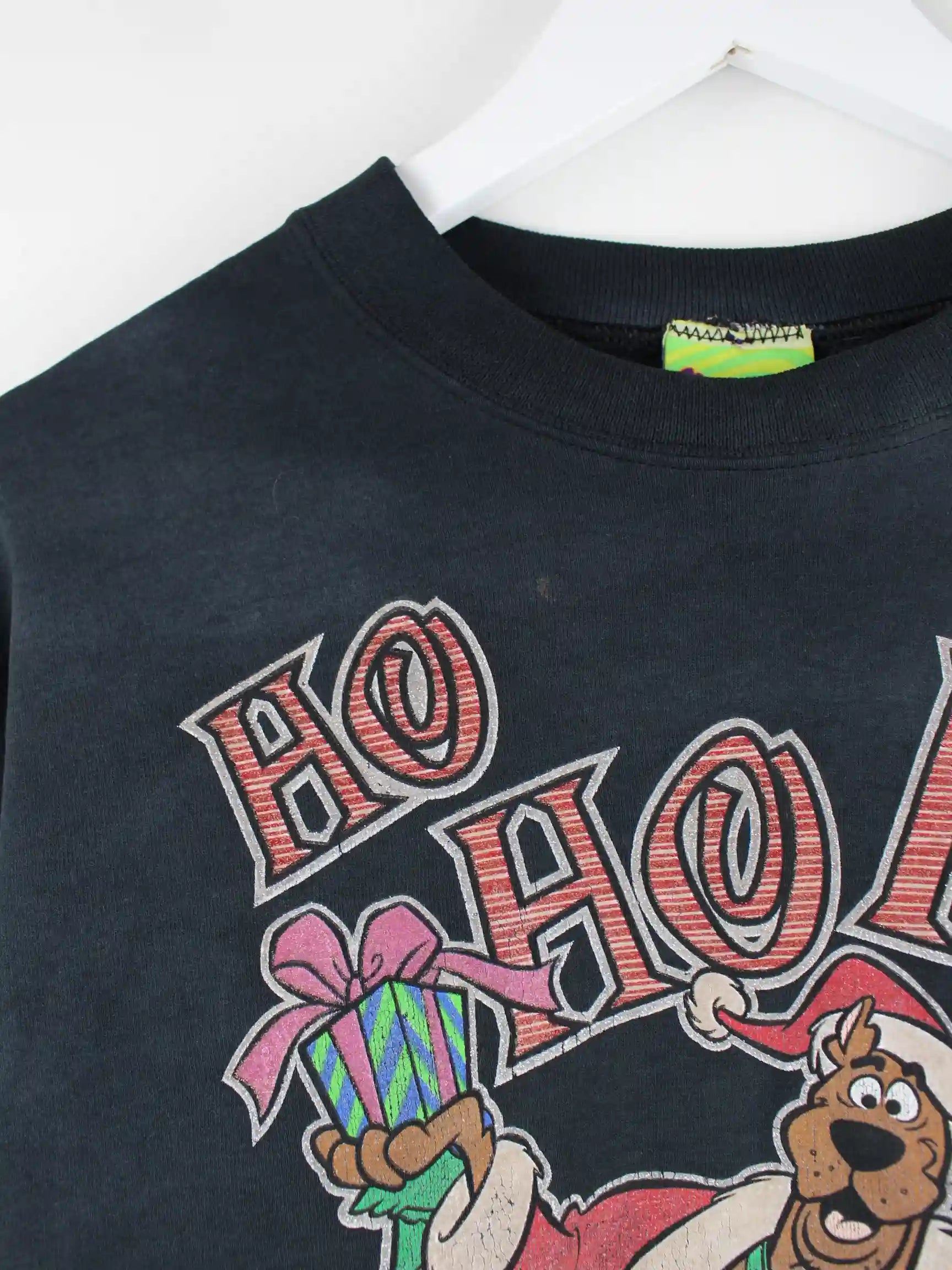 Vintage 00s Scooby Doo Christmas Print Faded Sweater Schwarz L