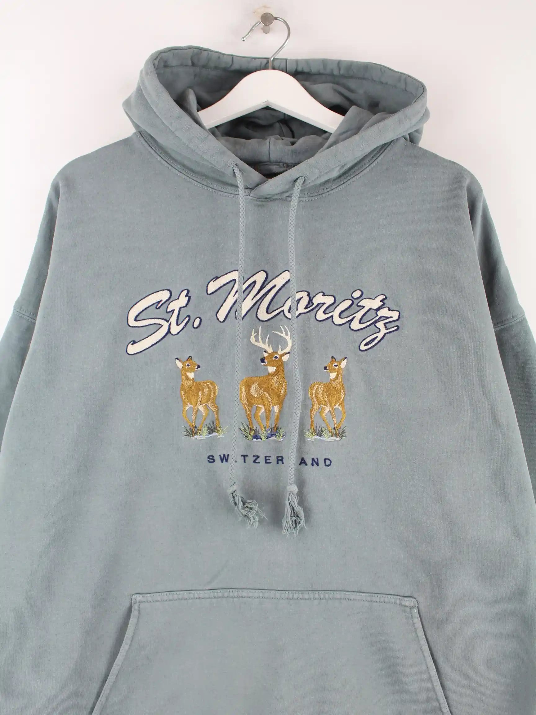 Vintage 00s St. Moritz Embroidered Hoodie Blau XL