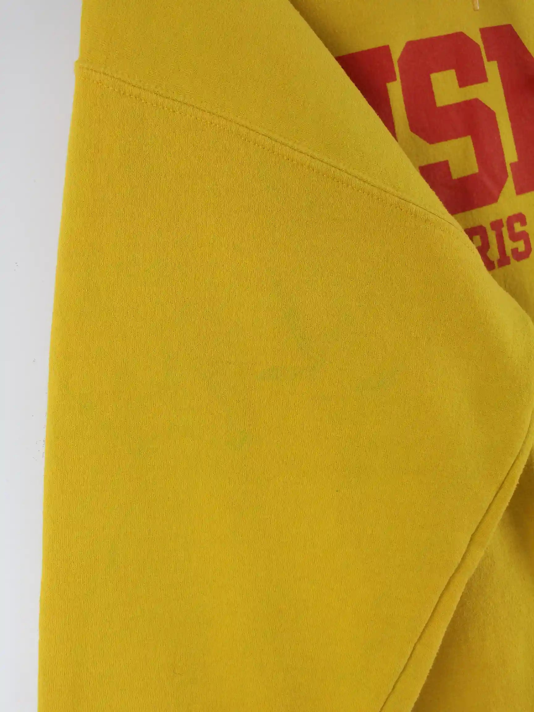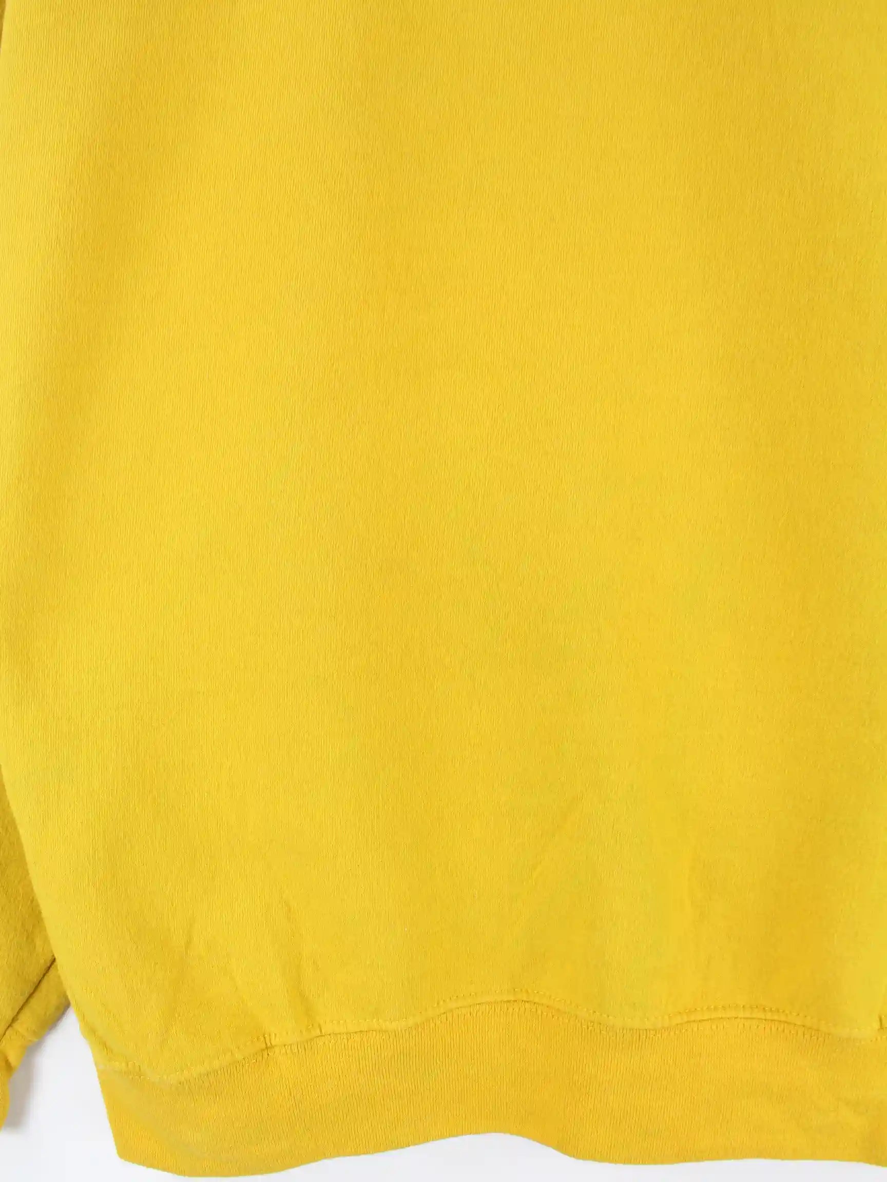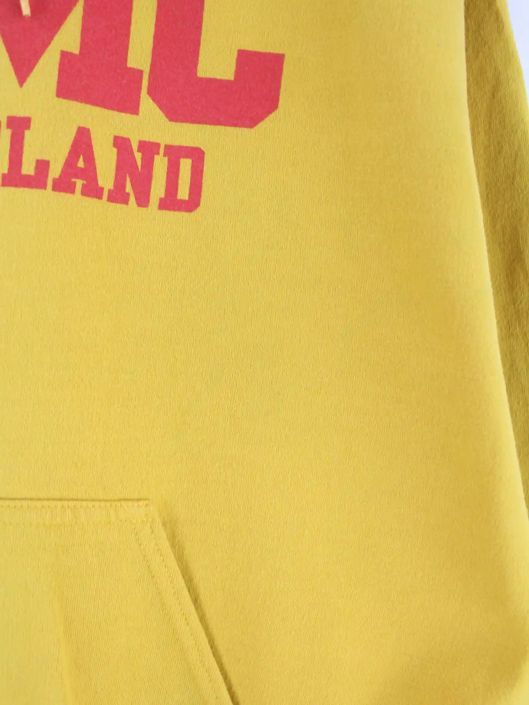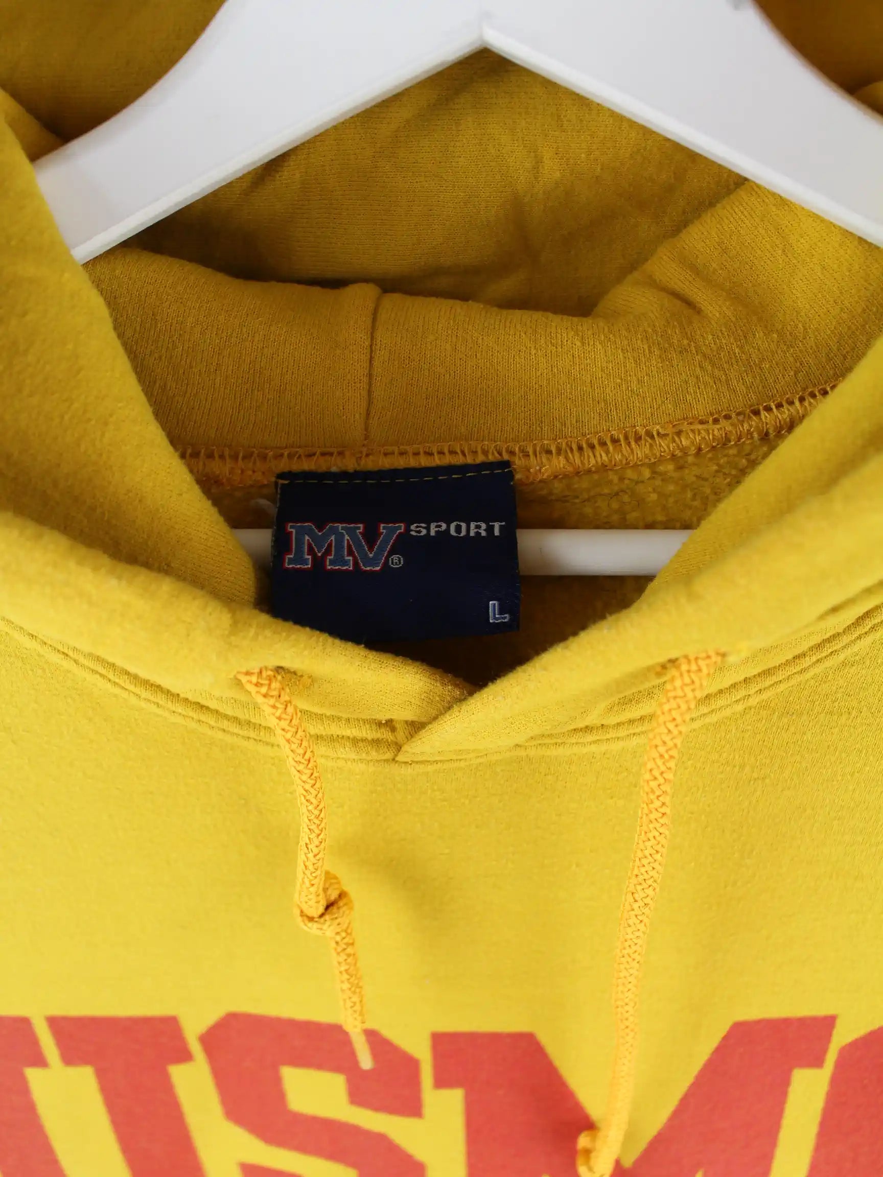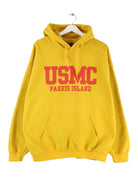 Vintage Hoodie in Größe L. Er ist aus einer Baumwollmischung angefertigt und in Gelb lieferbar. Mit schickem USMC Print.