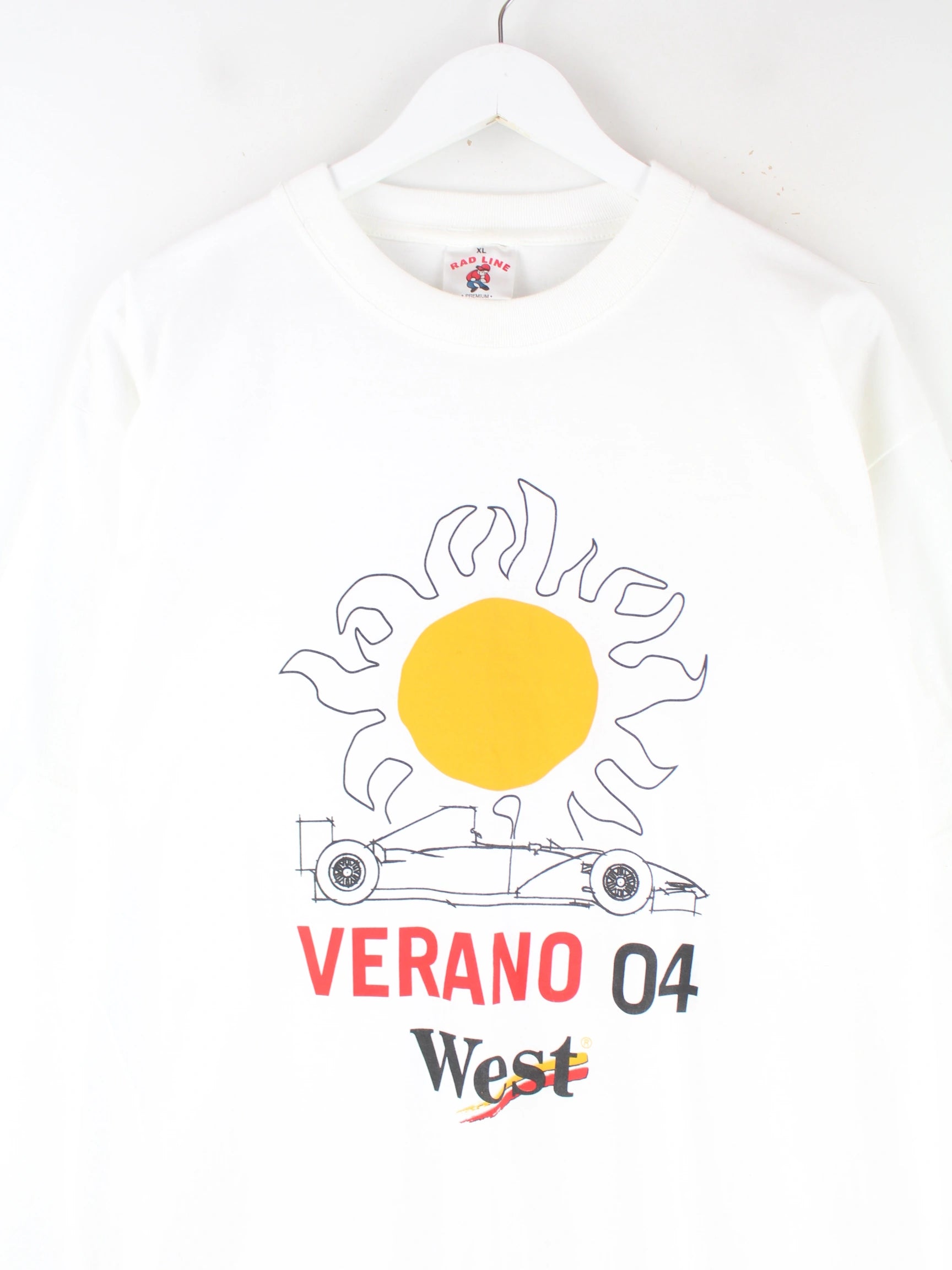 Vintage 00s Verano 04 Racing West Print T-Shirt Weiß XL