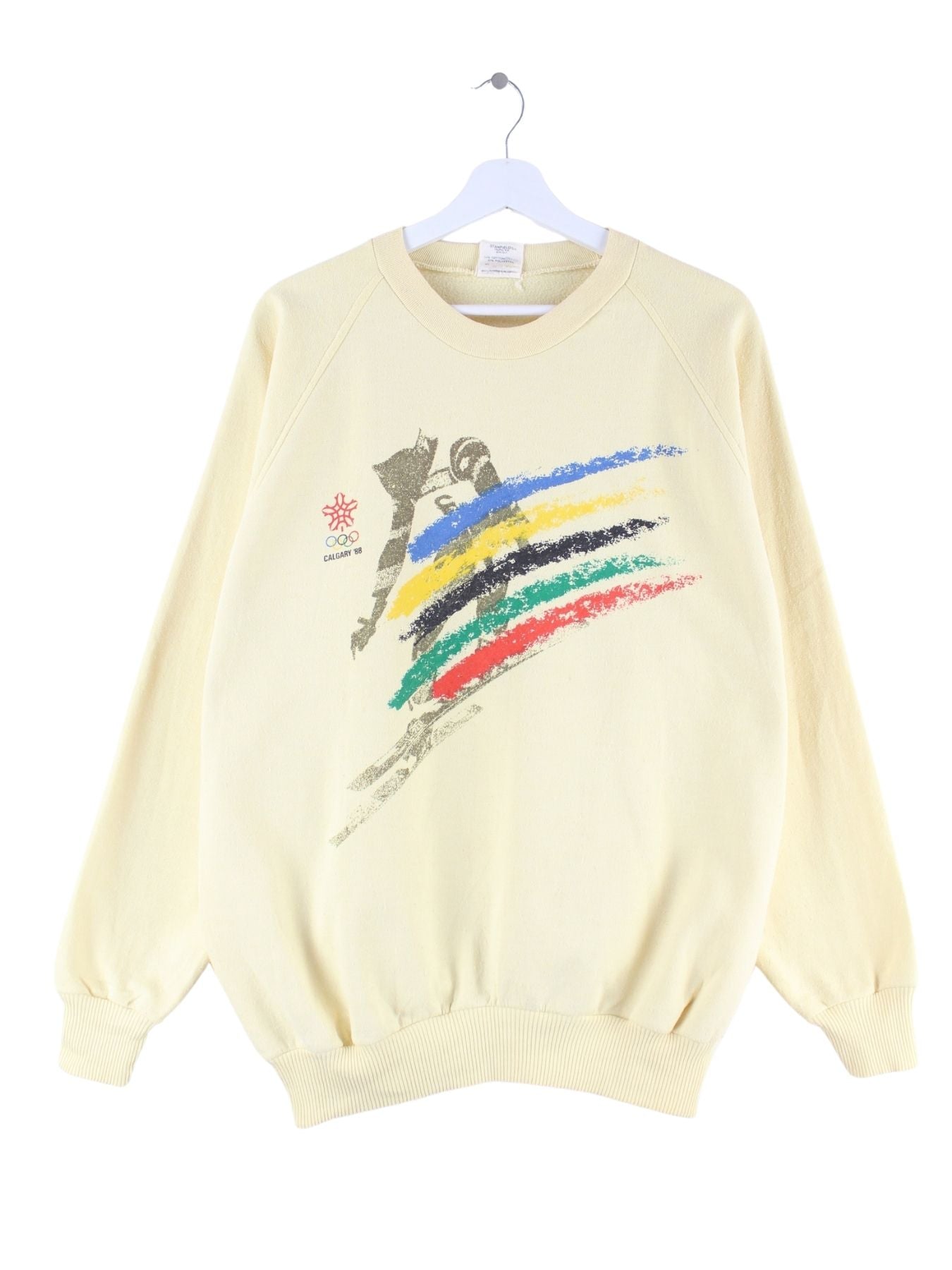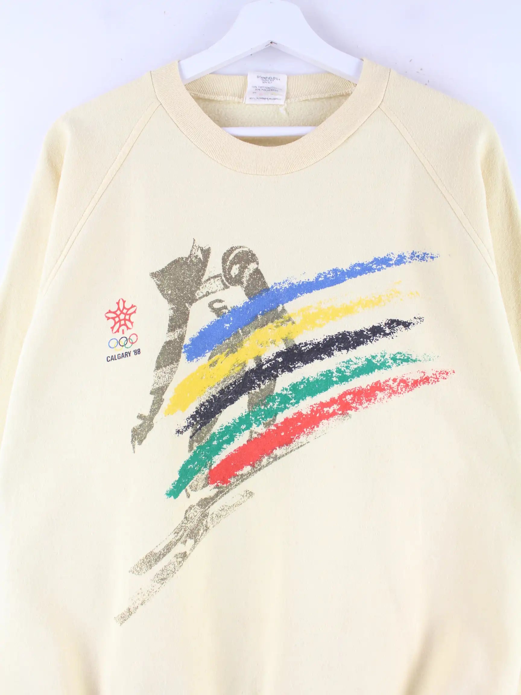 Vintage 1988 Olympic Winter Games Print Sweater Gelb XL