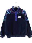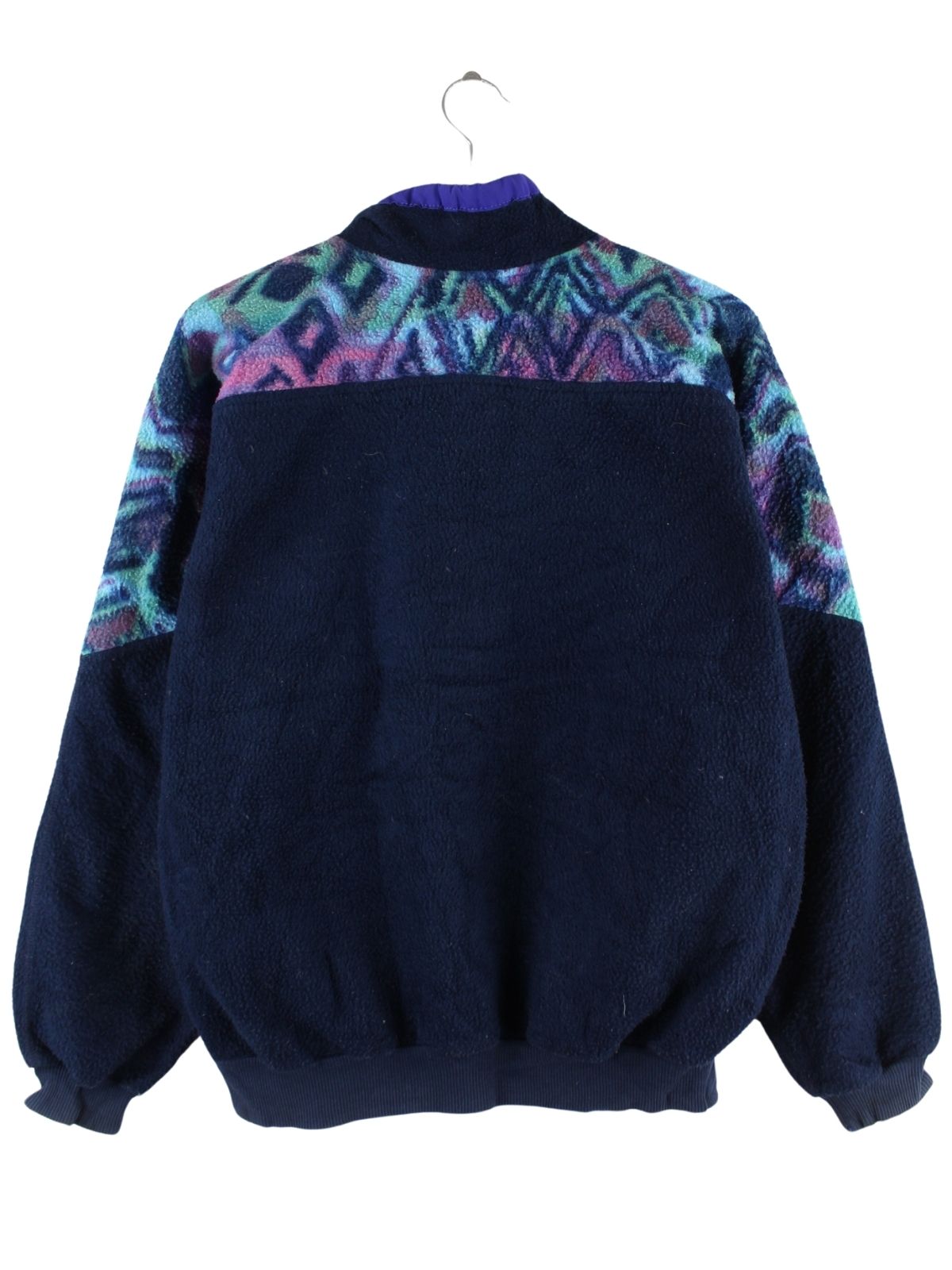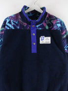 Blauer Vintage Sweater in Größe M. Er ist aus gemütlichem Fleece und in sehr gutem Zustand bei uns zu bekommen.
