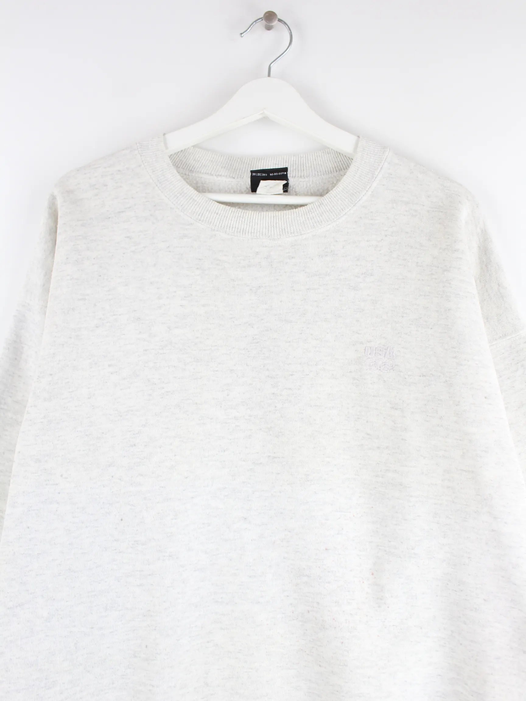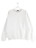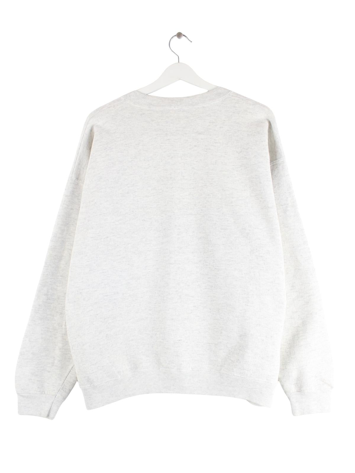 Grauer Vintage Sweater in Größe L. Er ist aus einer Baumwollmischung produziert. Den Zustand würden wir als 'In Ordnung' bezeichnen (vergl. Bilder).