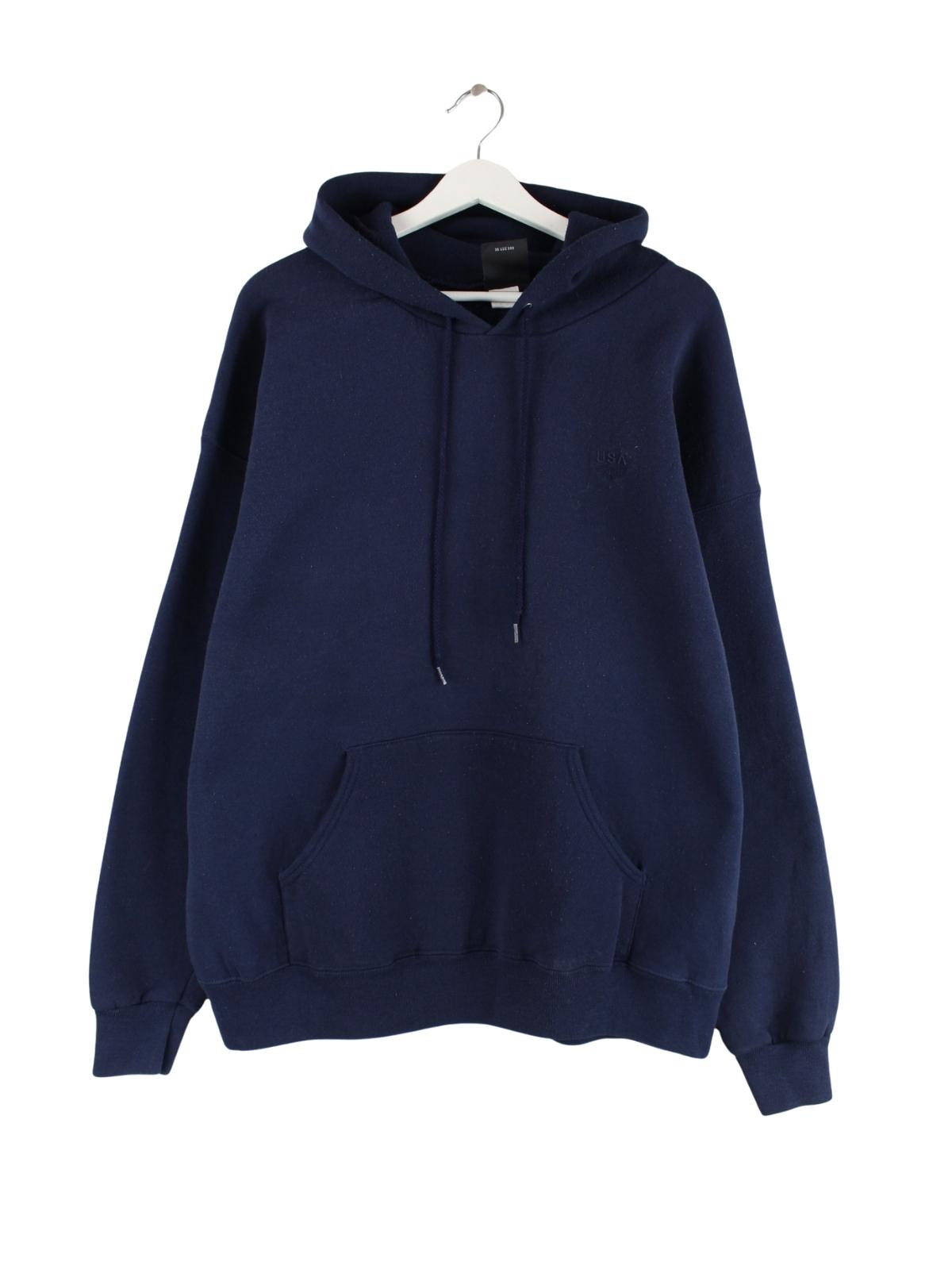 Blauer Vintage Hoodie in Größe XXL. Er ist aus einer Baumwollmischung und in gutem Zustand im Bestand.