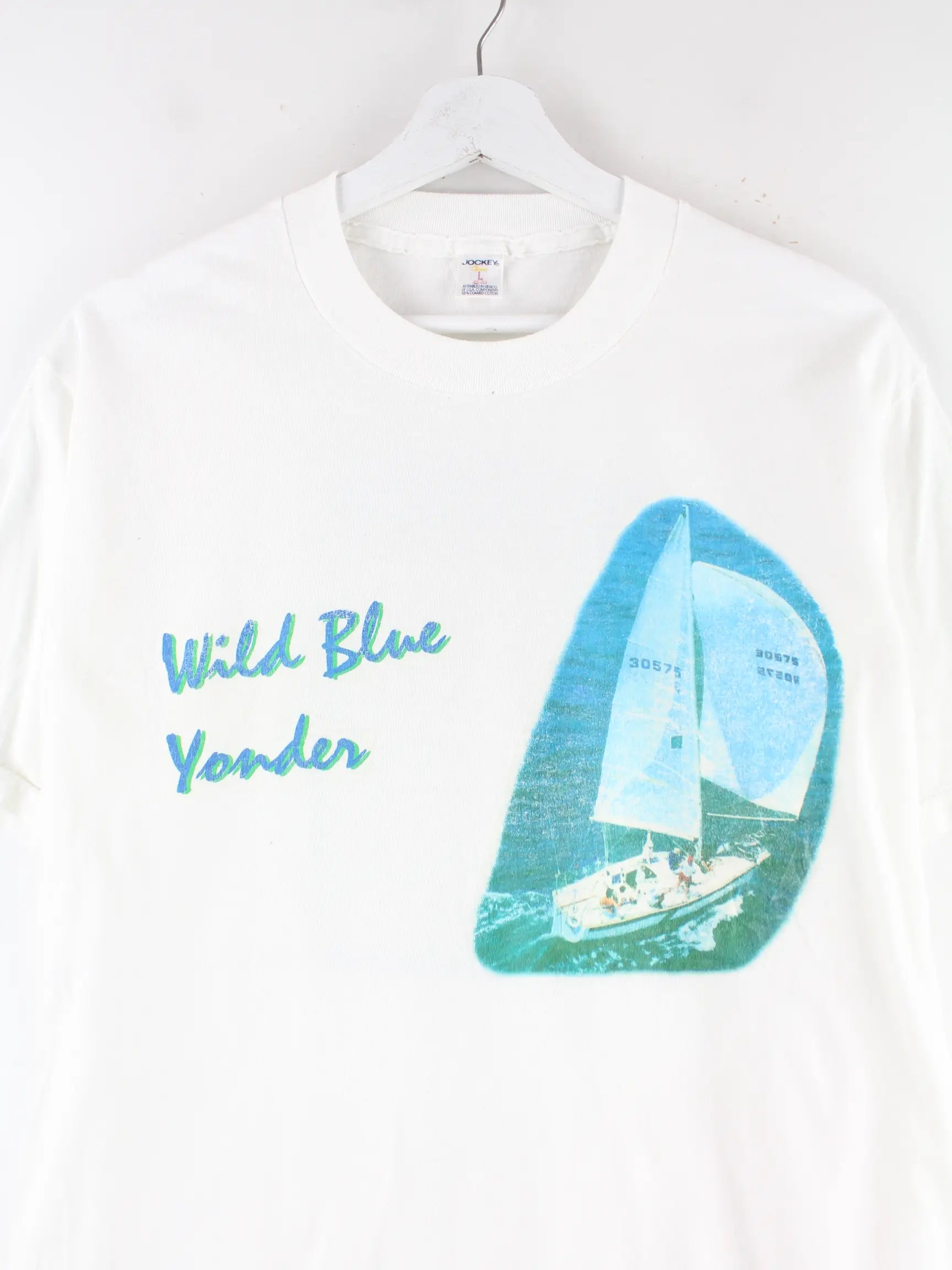 Vintage 1997 Sailing Print Single Stitch T-Shirt Weiß L