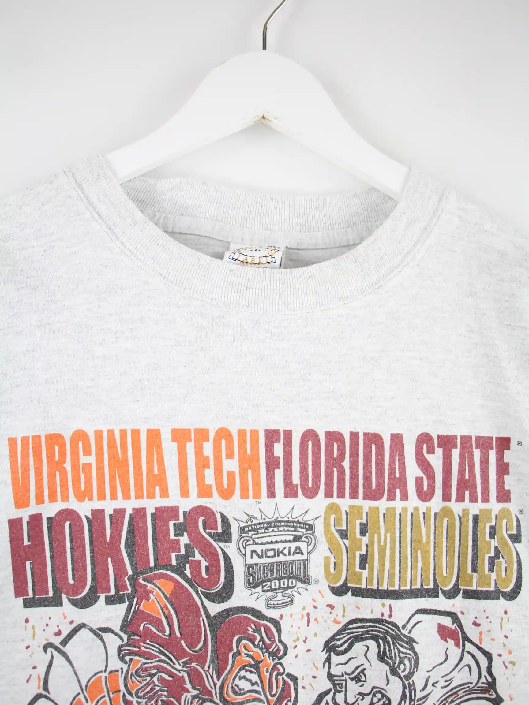 Graues Vintage T-Shirt in Größe XXL. Es ist aus Baumwolle angefertigt und in sehr gutem Zustand vorrätig. Mit tollem Bowl Print.