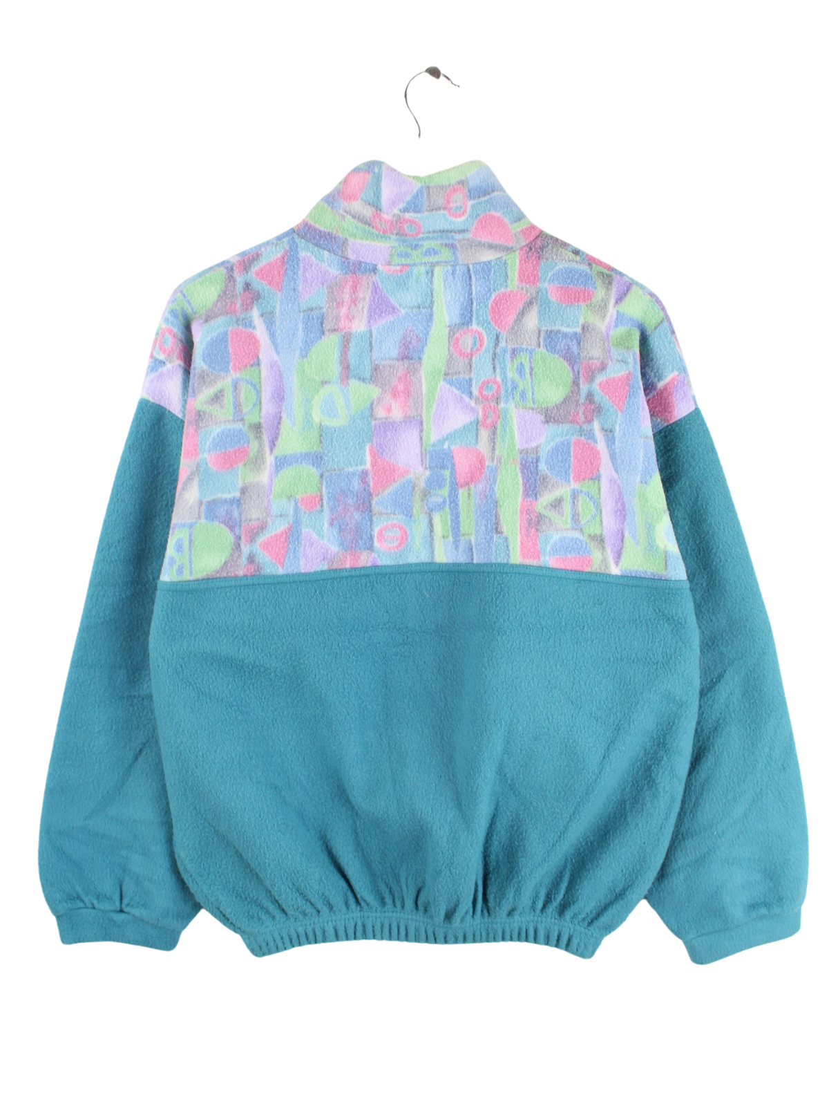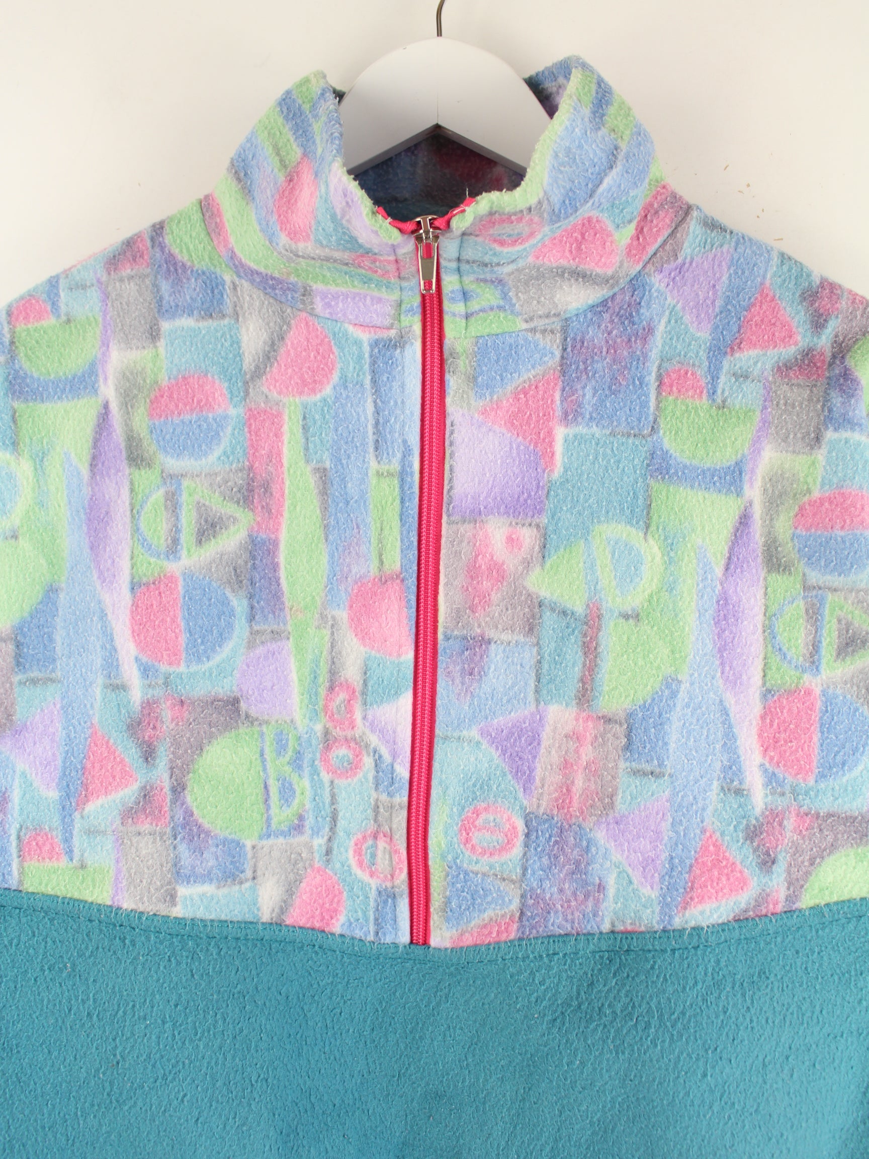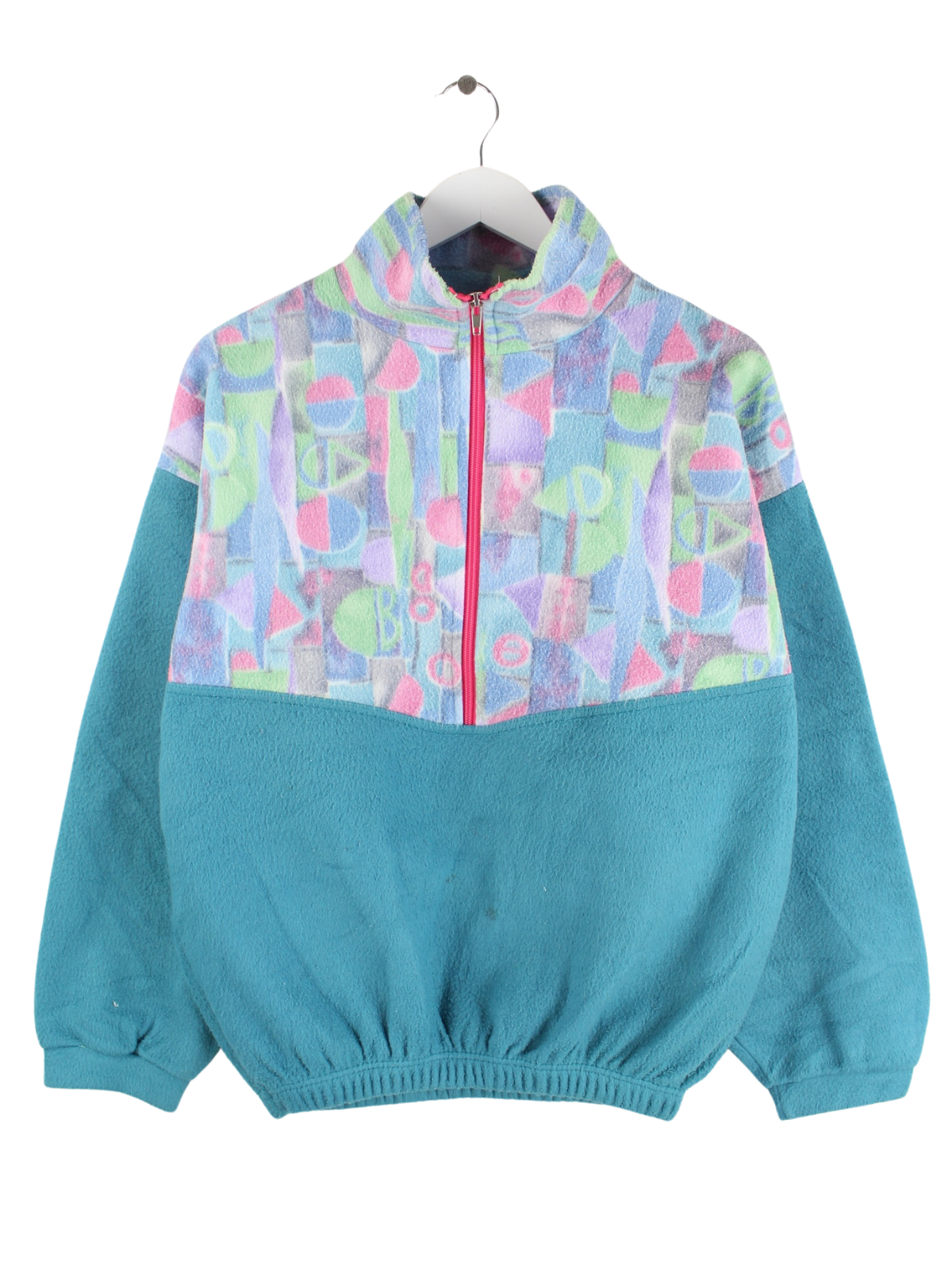Vintage 80s Crazy Pattern Half Zip Fleece Sweater Blau M