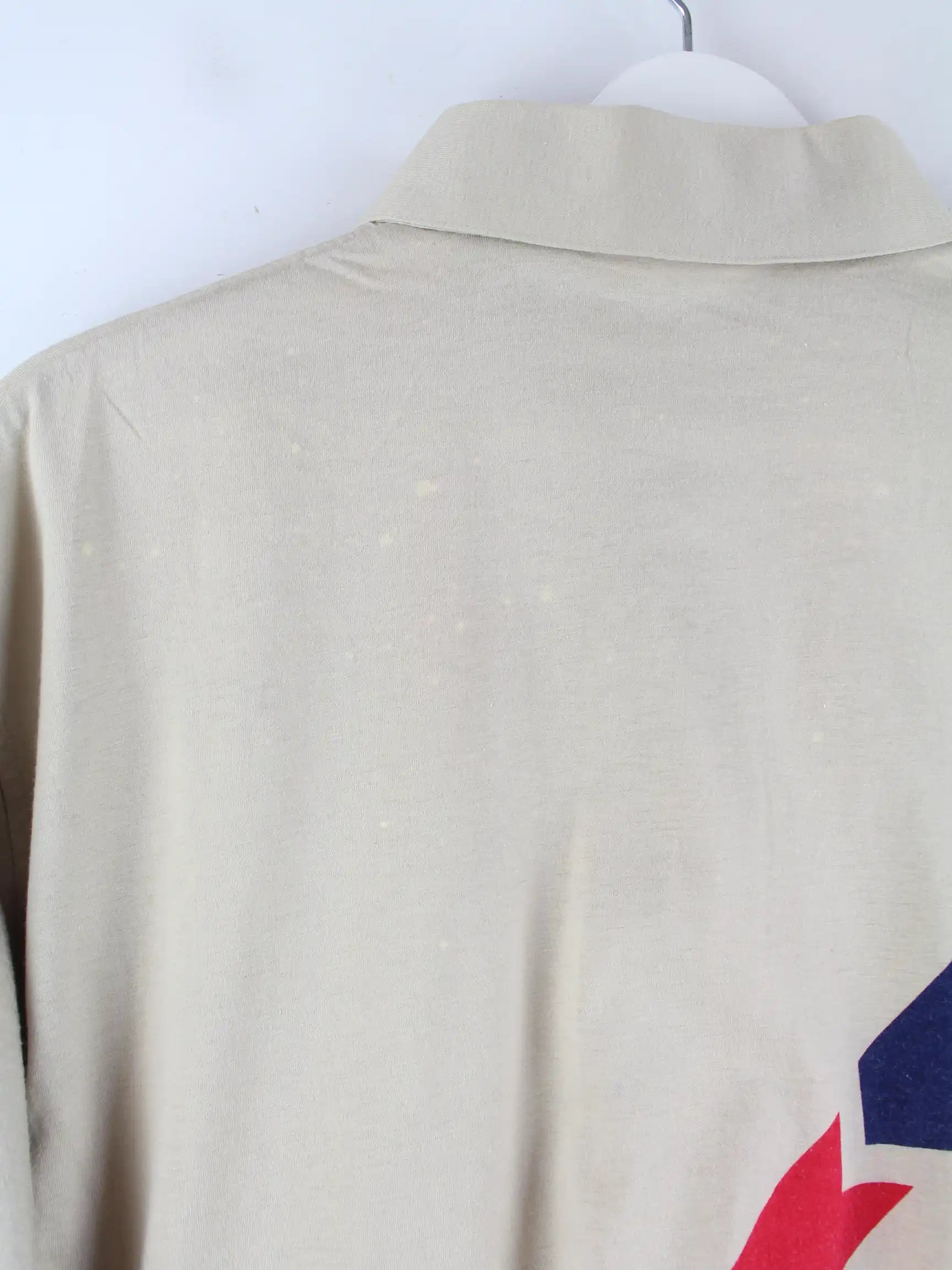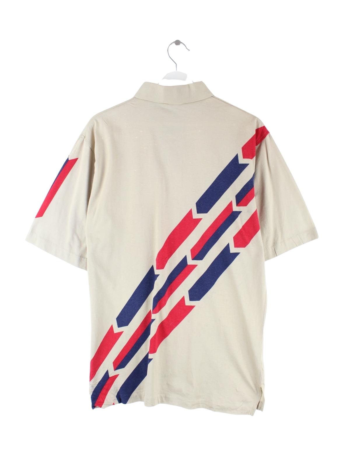 Vintage Poloshirt in Größe L aus den 80'ern. Es ist aus Baumwolle gefertigt und in Beige auf Lager.