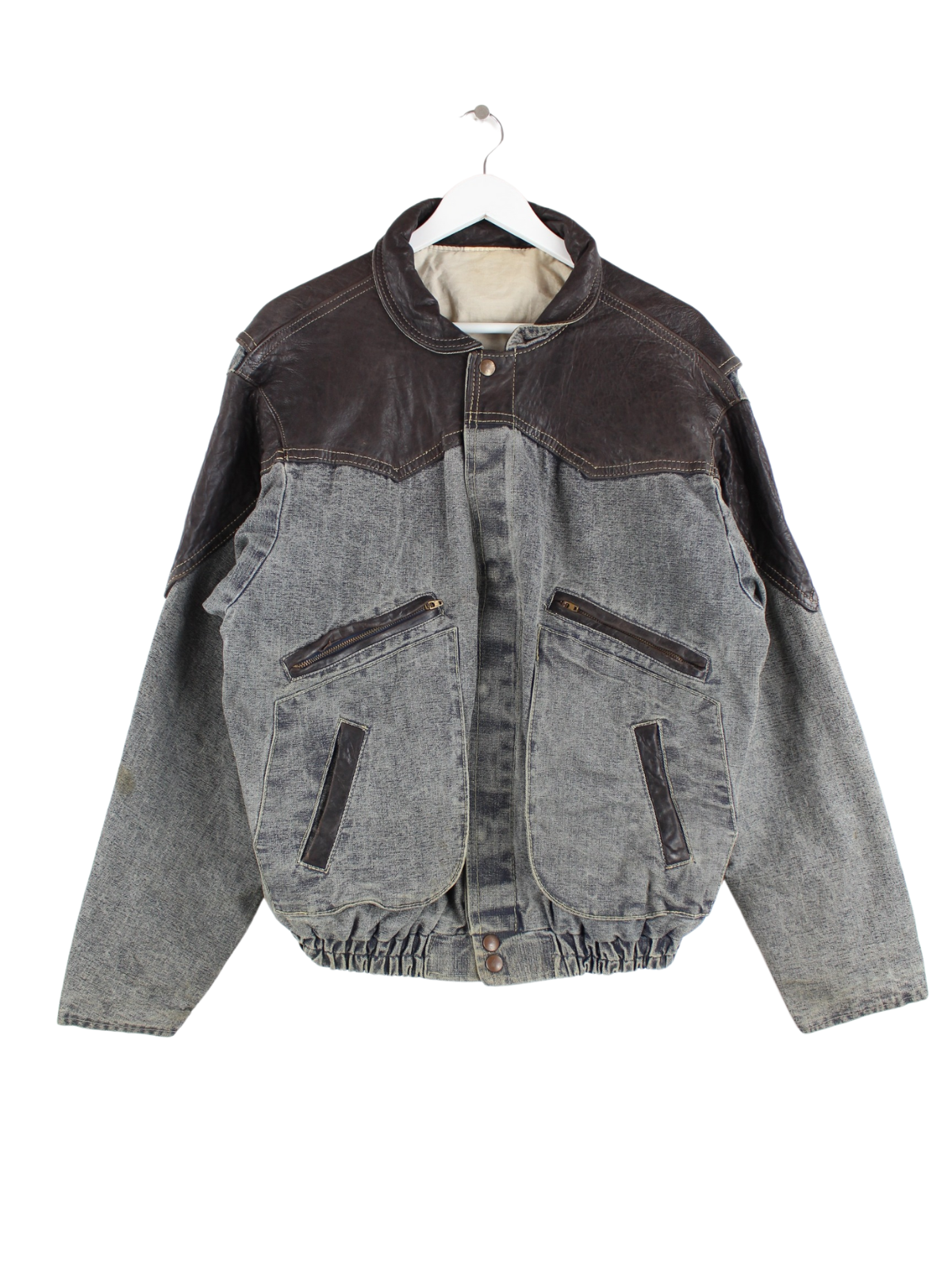 Vintage light jacket in size S from the 80's. It is made of mixed fabric and is available in grey.