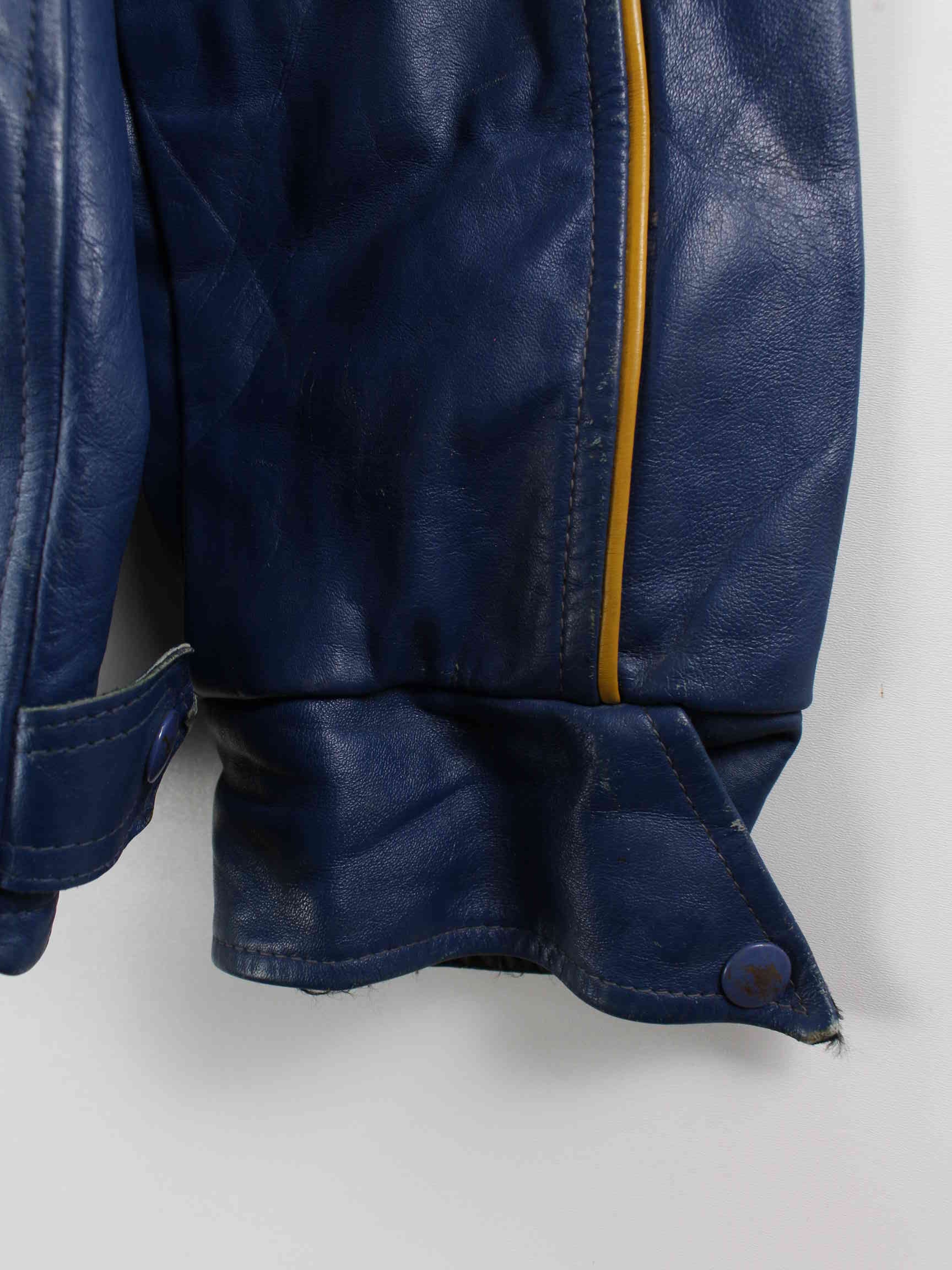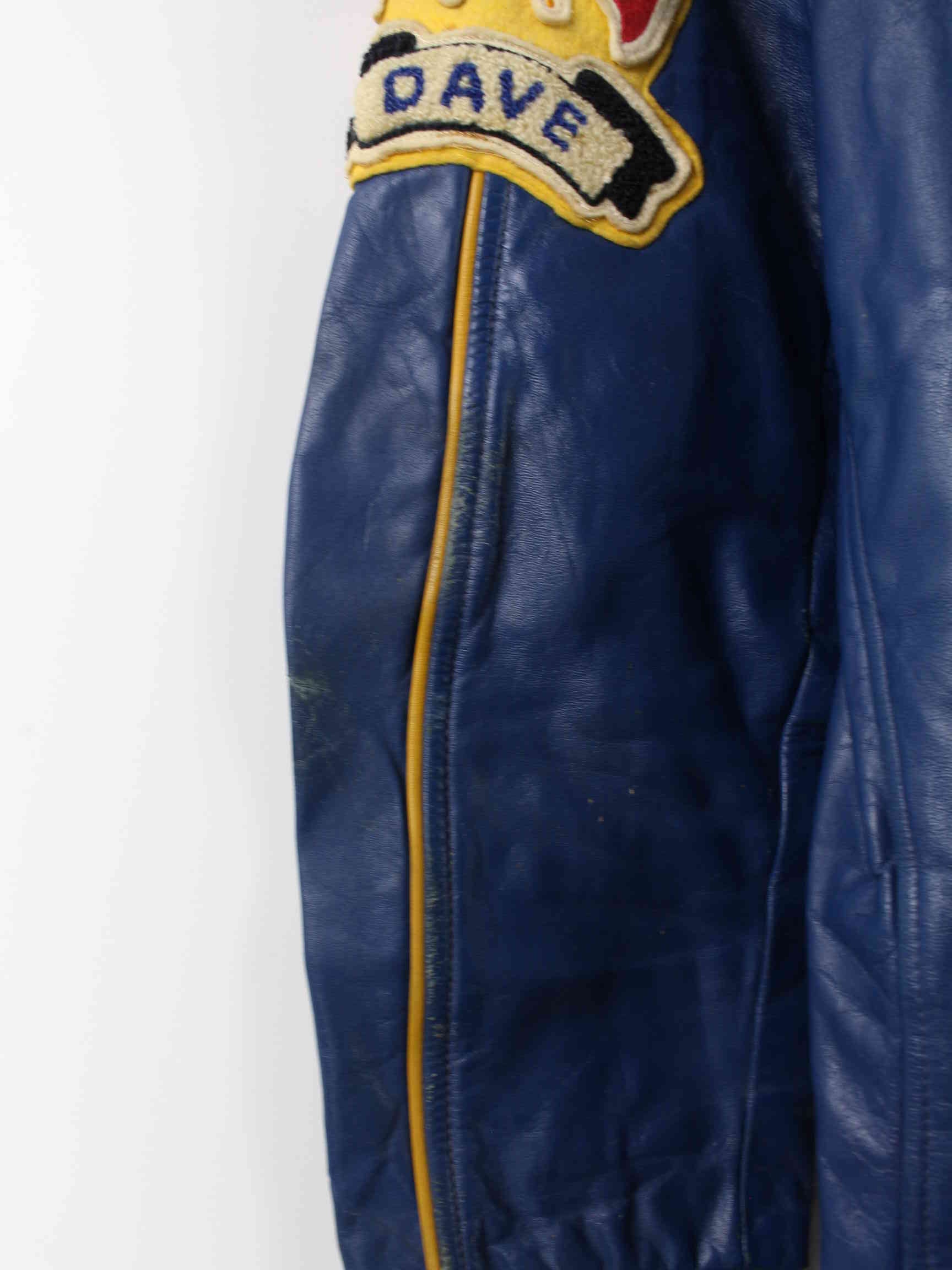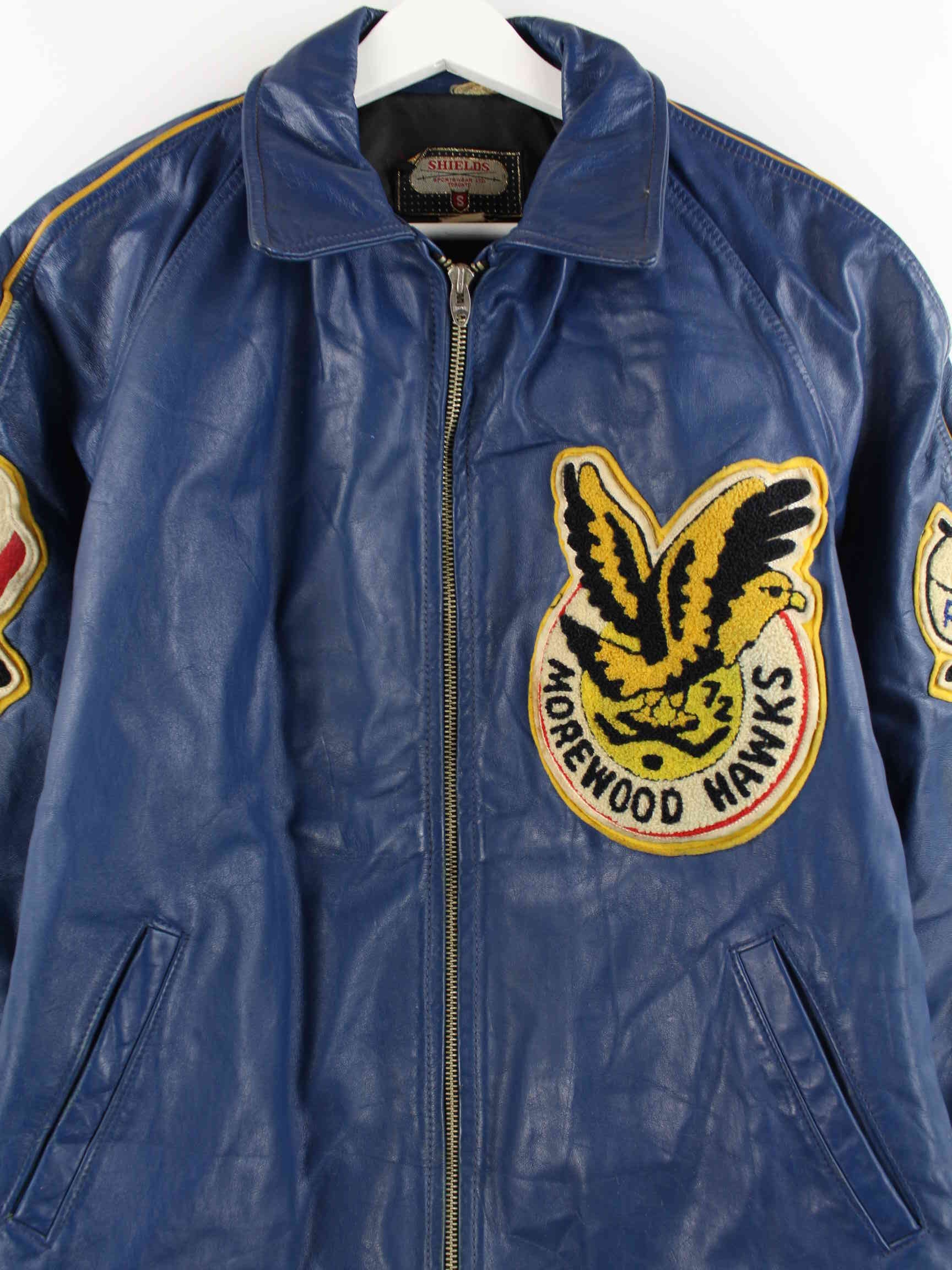 Vintage 80s Morewood Hawks Leather Jacket Blue M