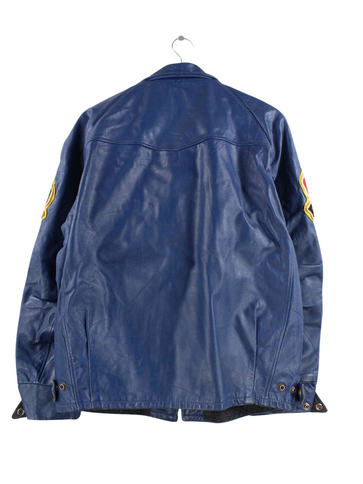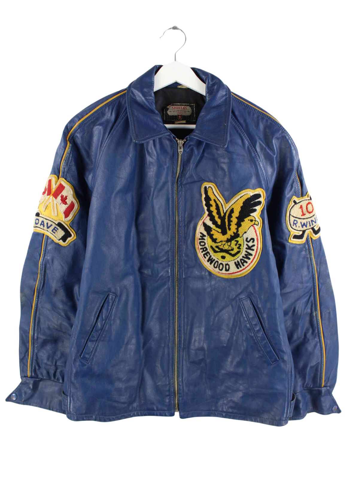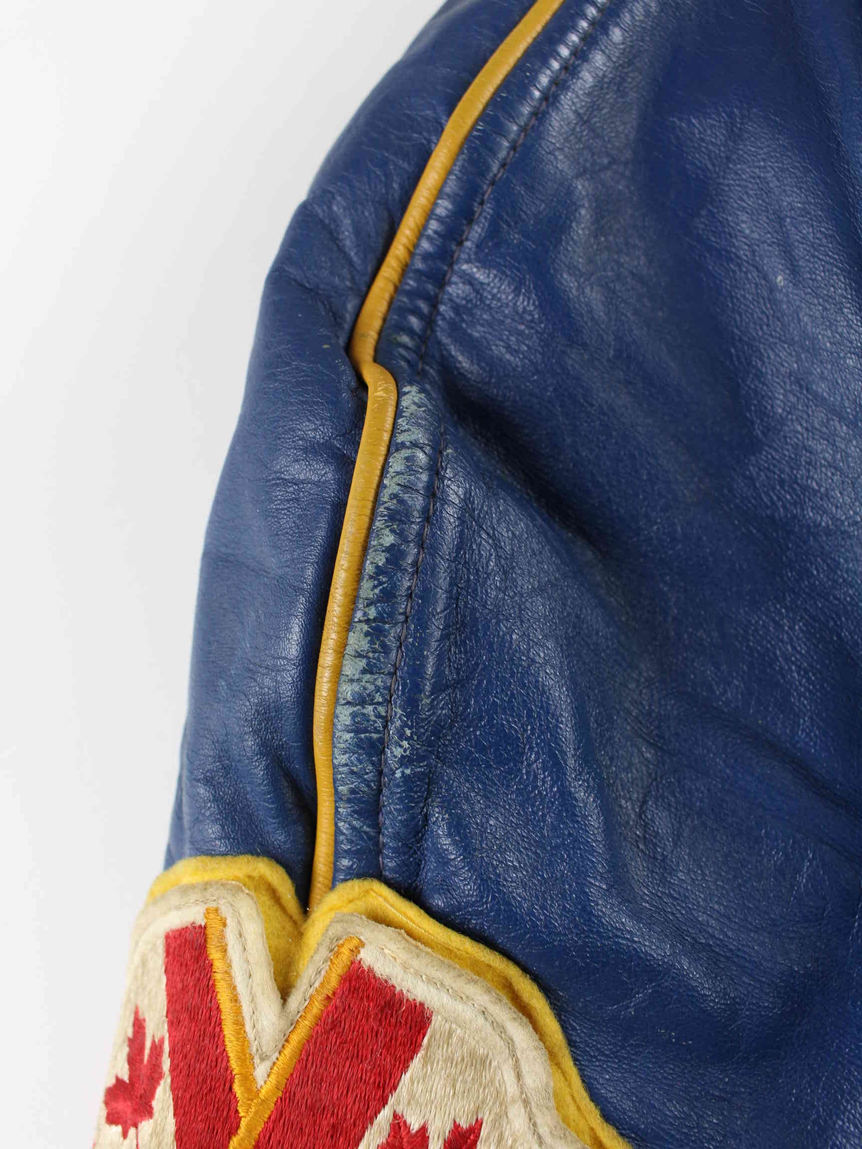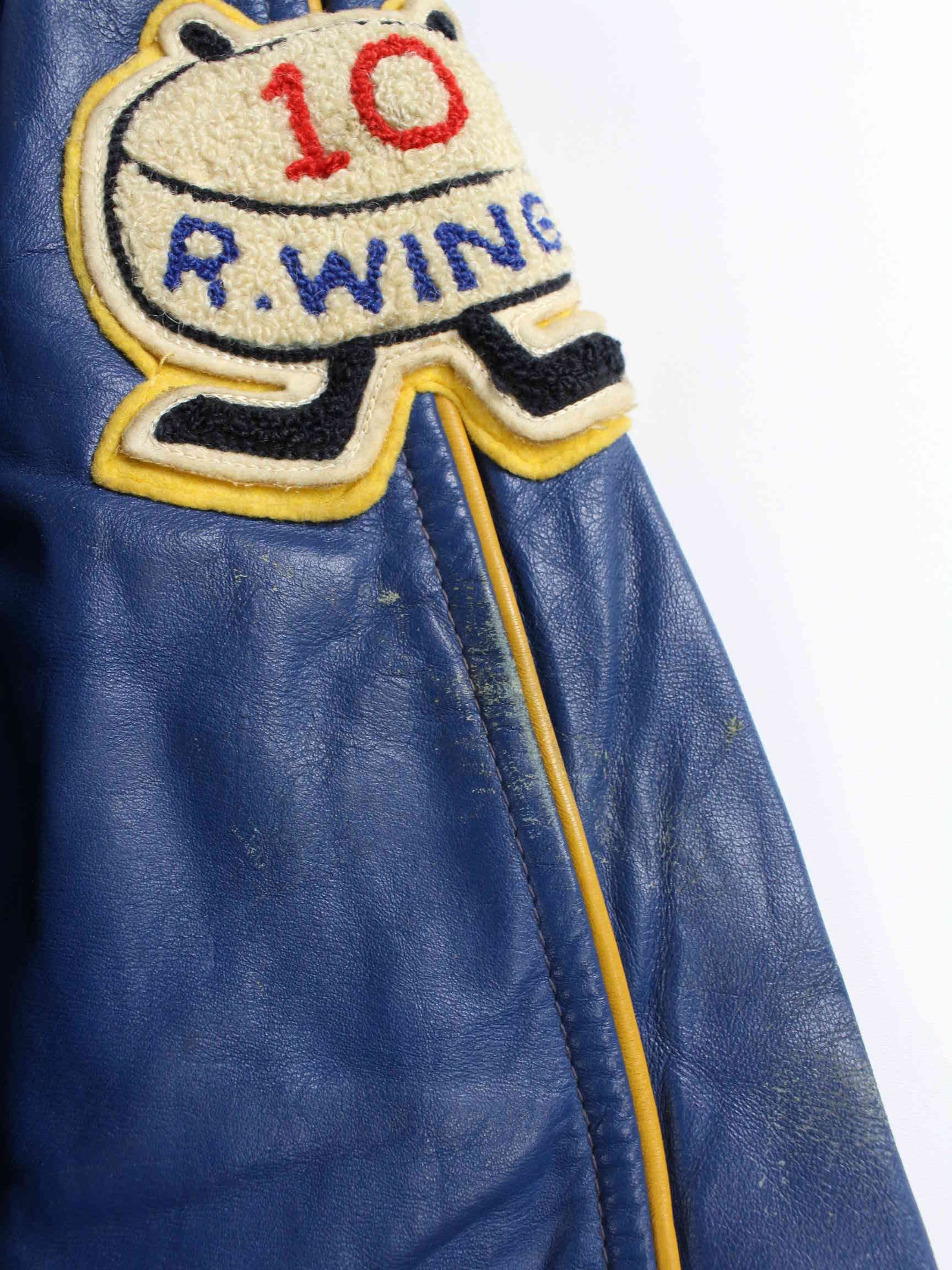 Vintage 80s Morewood Hawks Leather Jacket Blue M