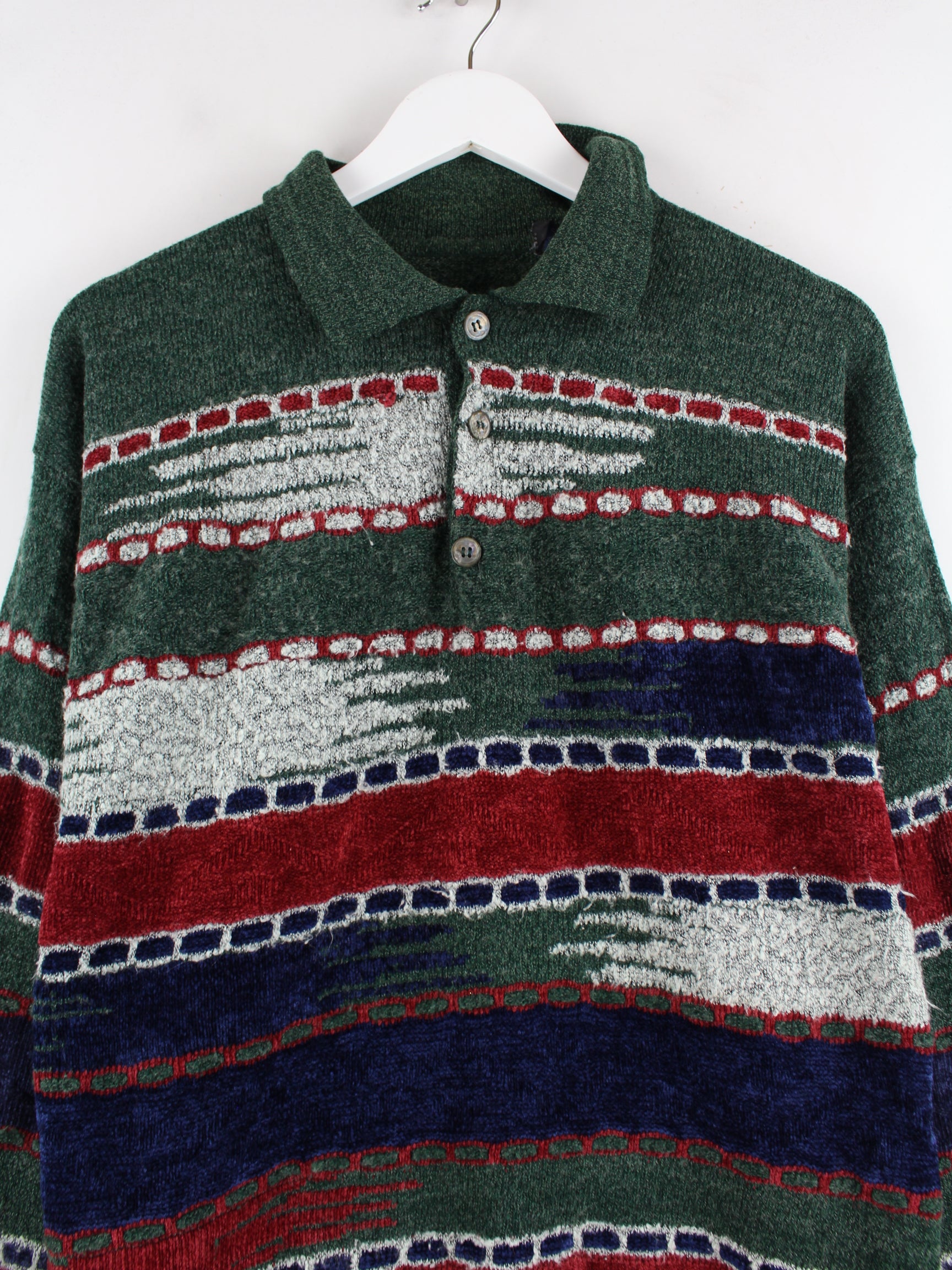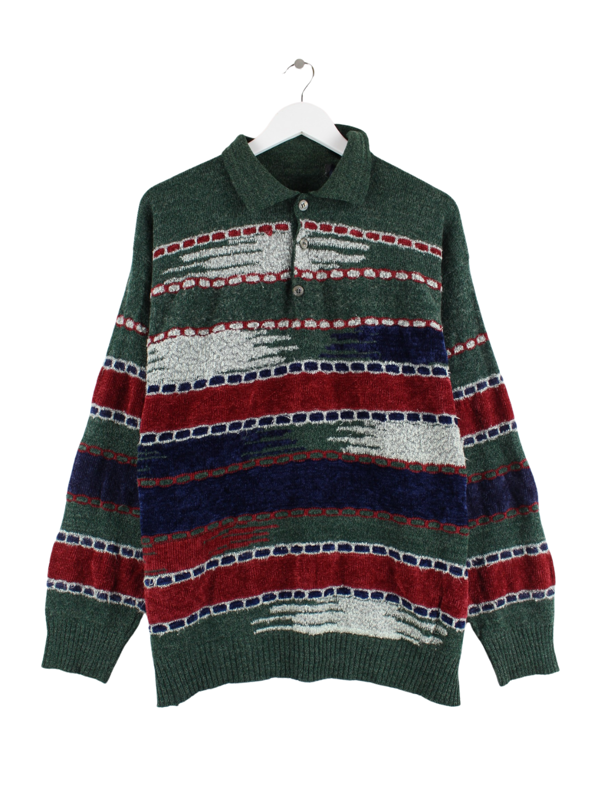 Grüner Vintage Pullover aus den 80'ern in Größe L. Er ist aus einer Wollmischung produziert und in sehr gutem Zustand vorrätig.