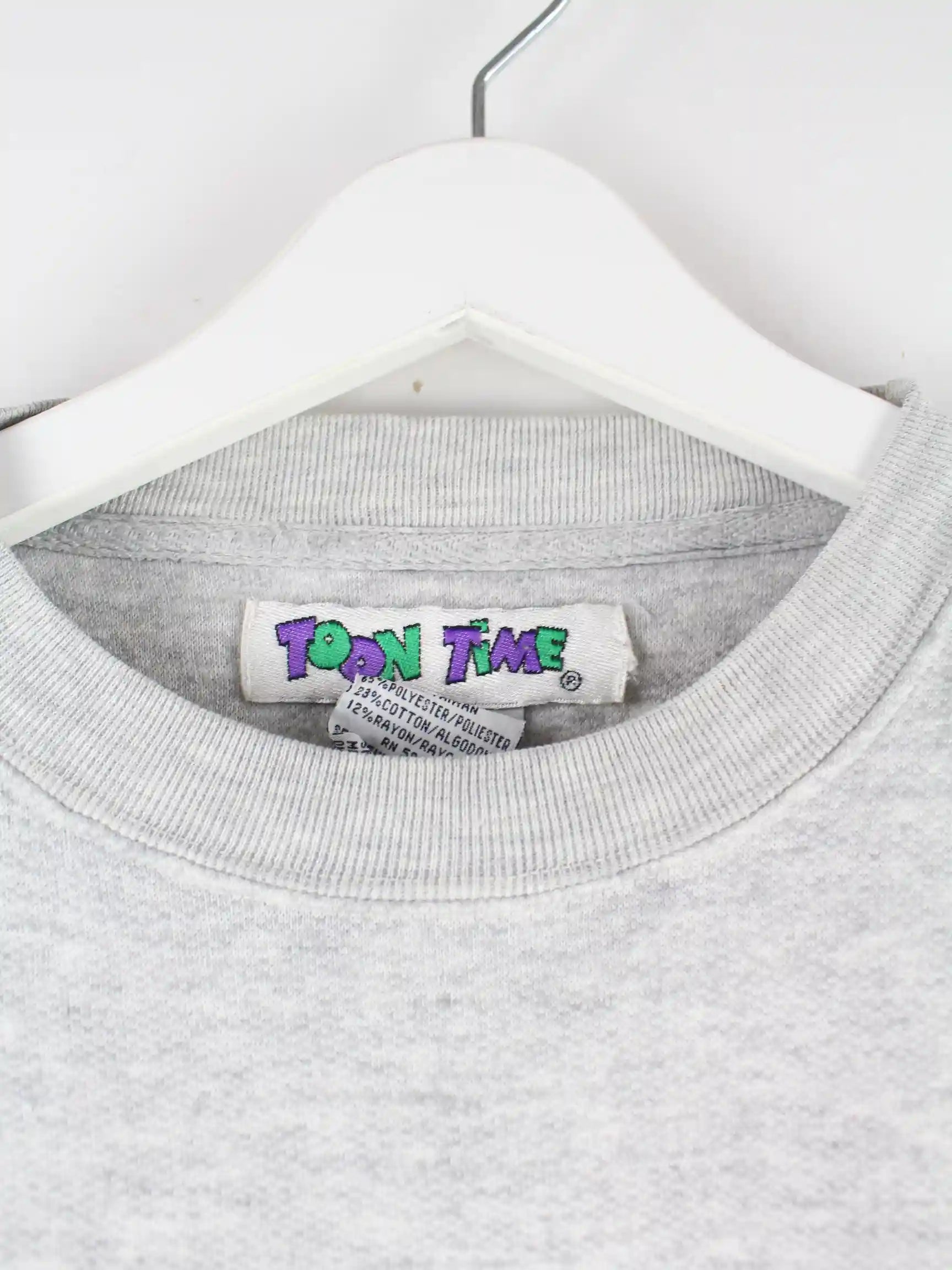 Grauer Vintage Sweater mit gesticktem Logo aus den 80'ern in Größe S. Er ist aus einer Baumwollmischung und in sehr gutem Zustand bei uns vorrätig.