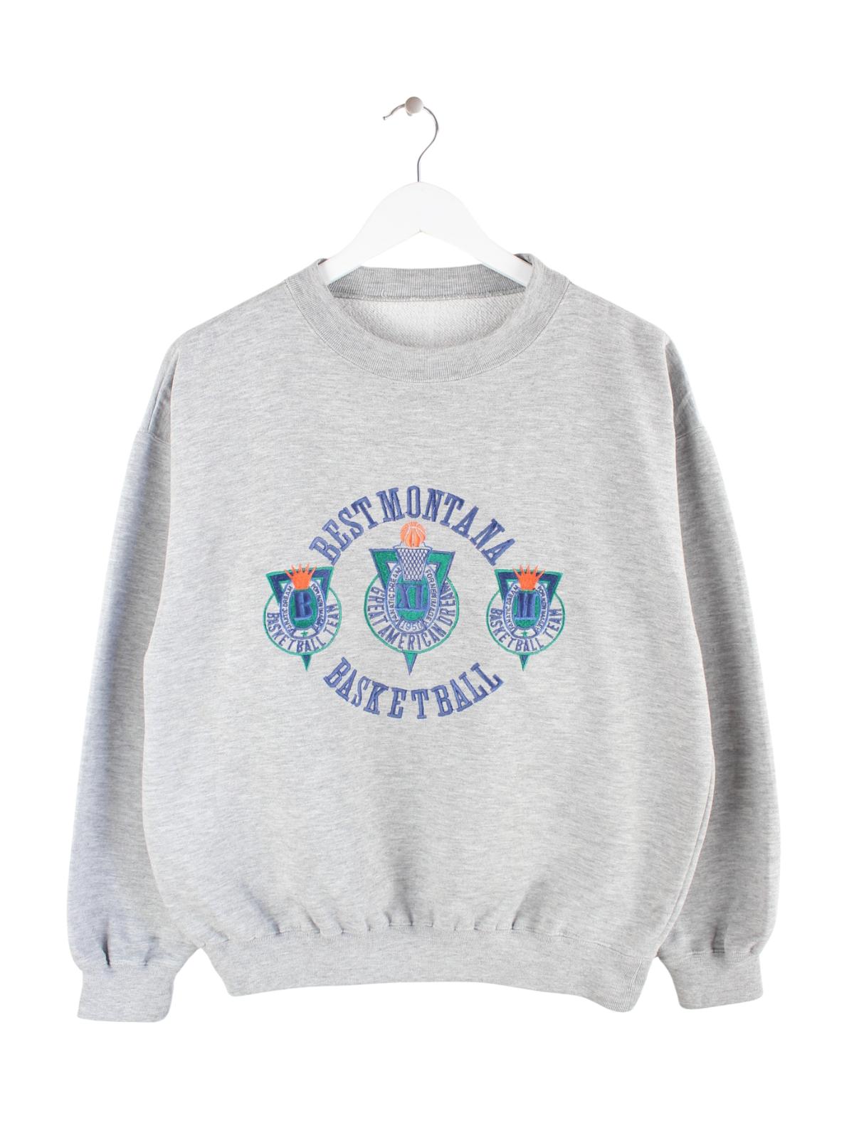 Vintage 90s Best Montana Basketball Sweater Grau S
