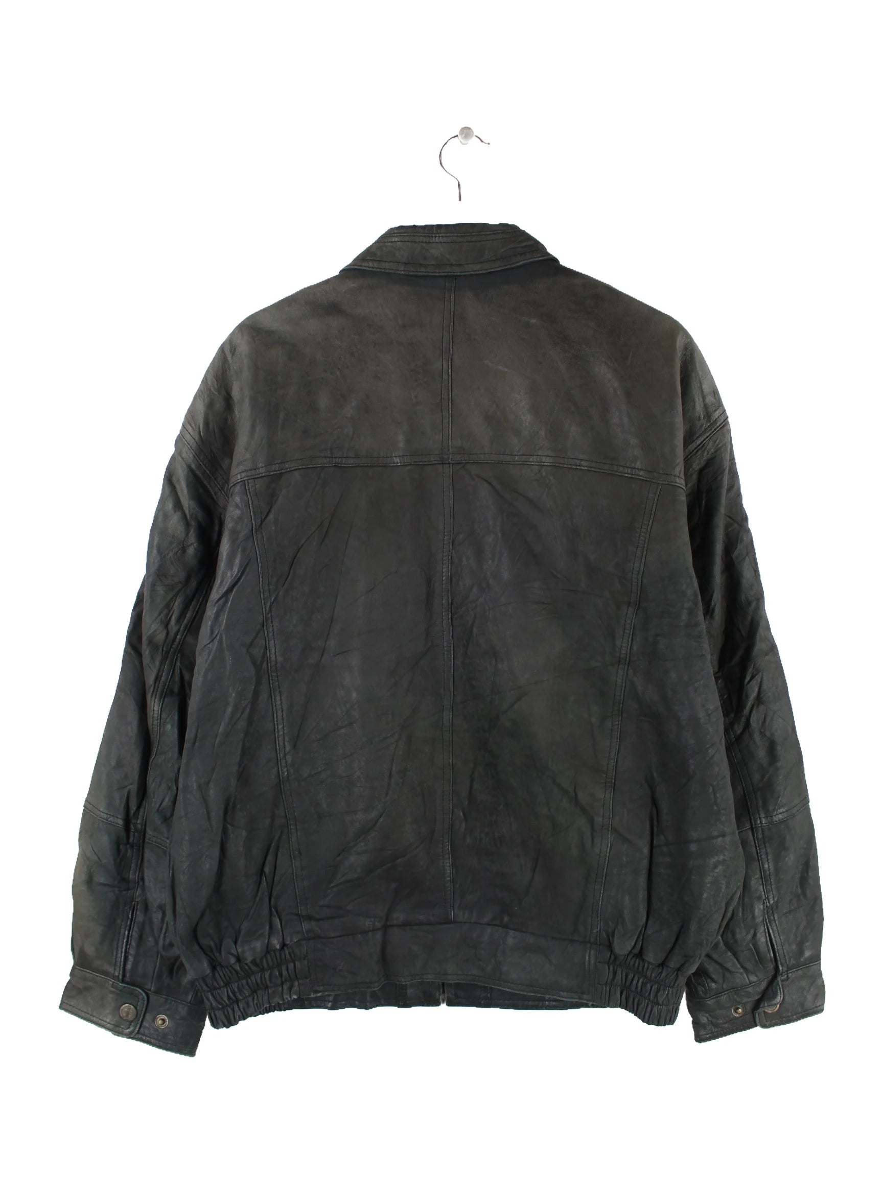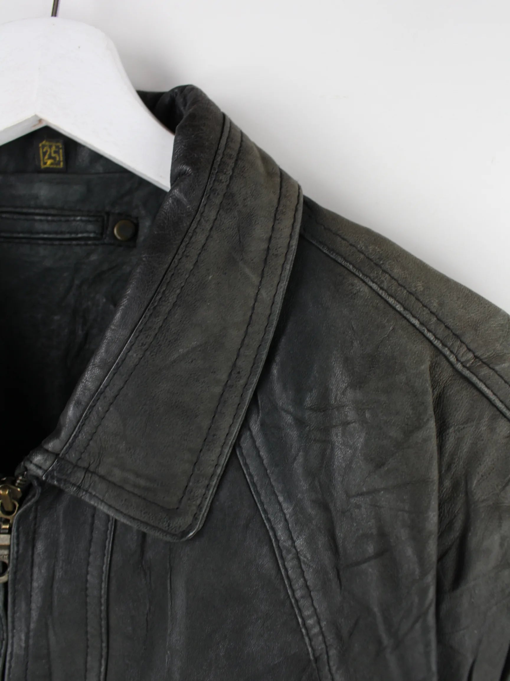 Vintage Jacke in Größe M aus den 90'ern. Sie ist aus Leder und in Grau auf Lager.