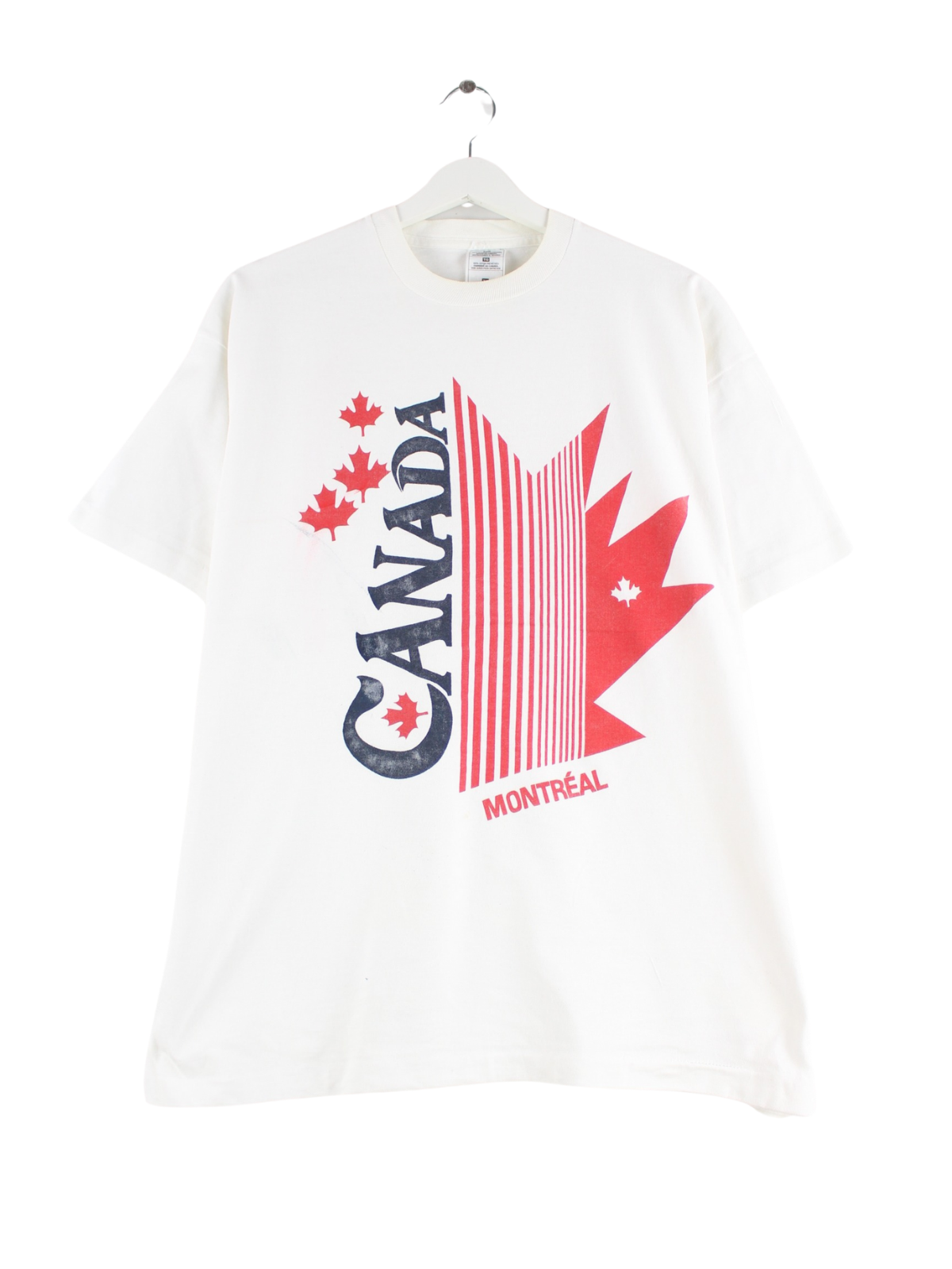 Vintage T-shirt in size L from the 90's. It is made of cotton and is available in white. With a rare Canada print.
