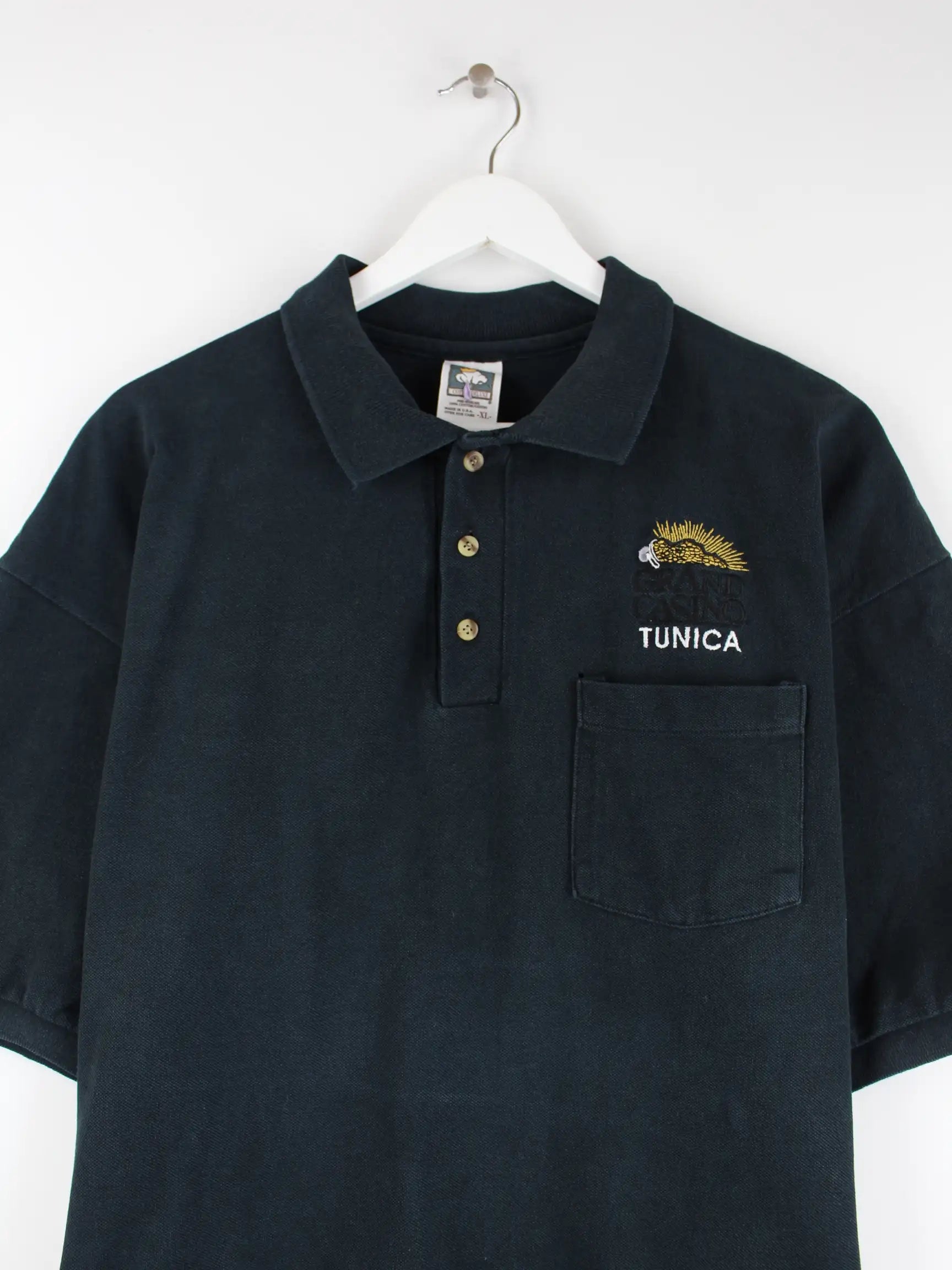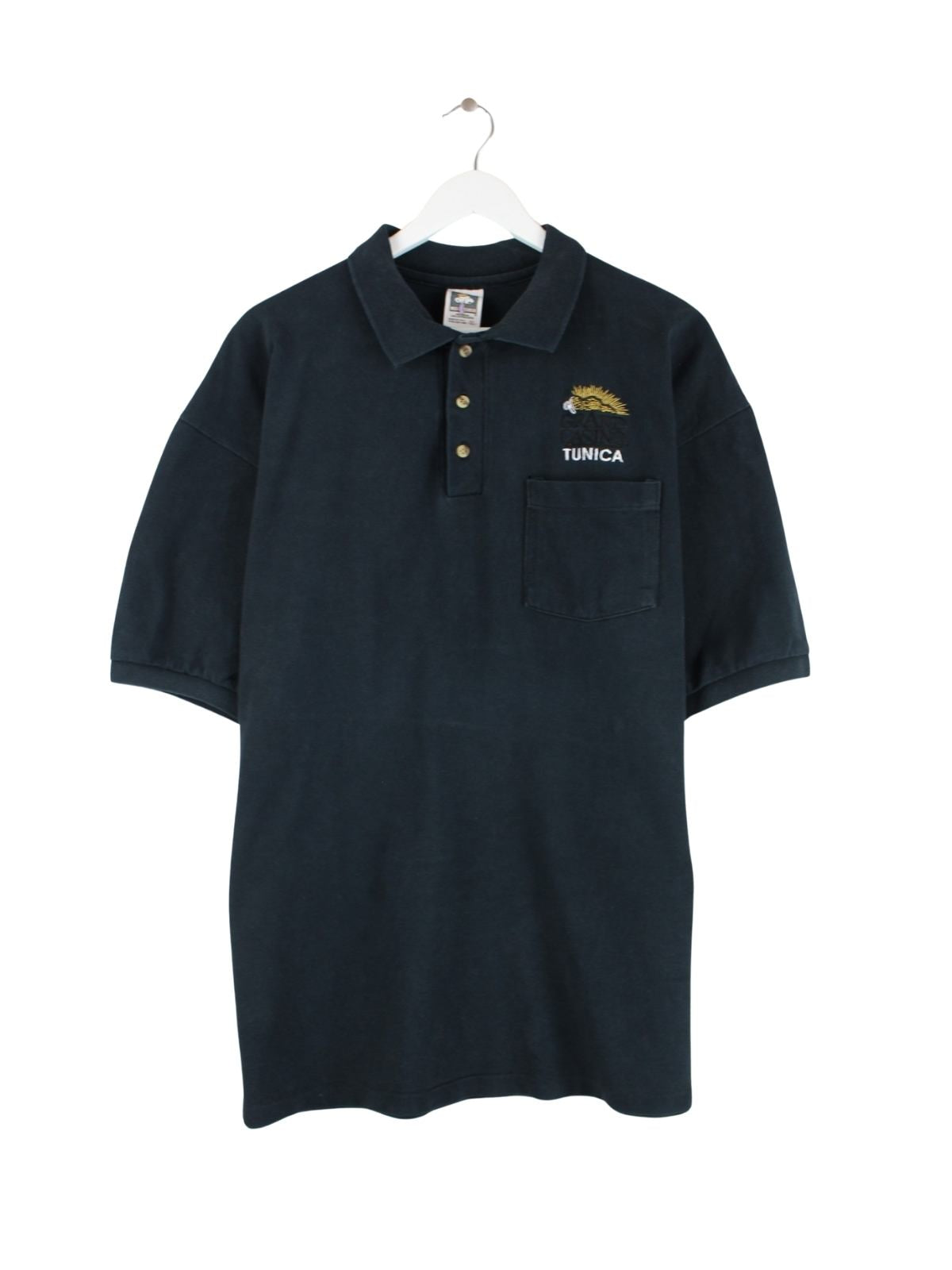 Schwarzes Vintage Poloshirt aus den 90'ern in Größe XL. Es ist aus Baumwolle angefertigt und in gutem Zustand lieferbar.
