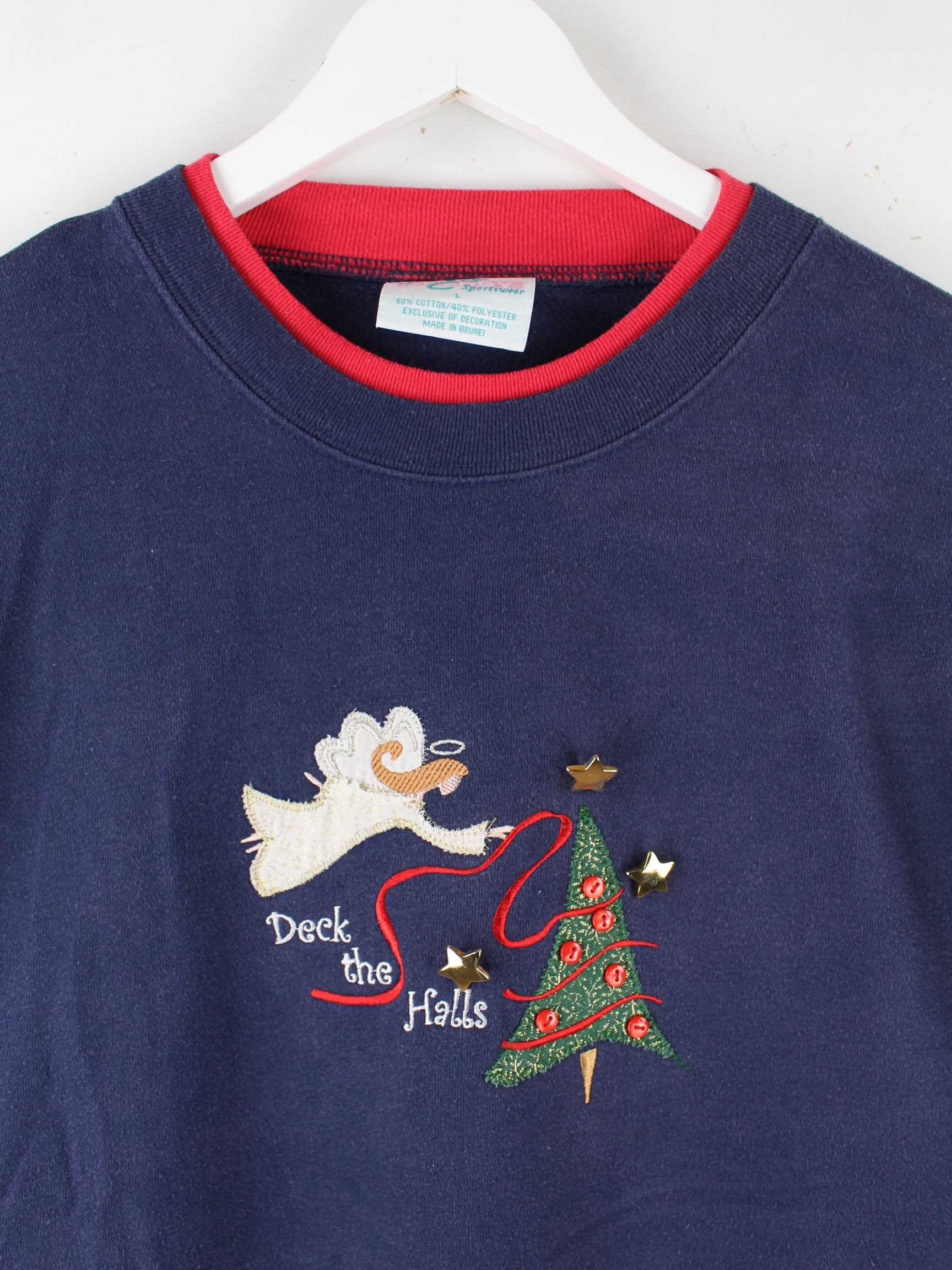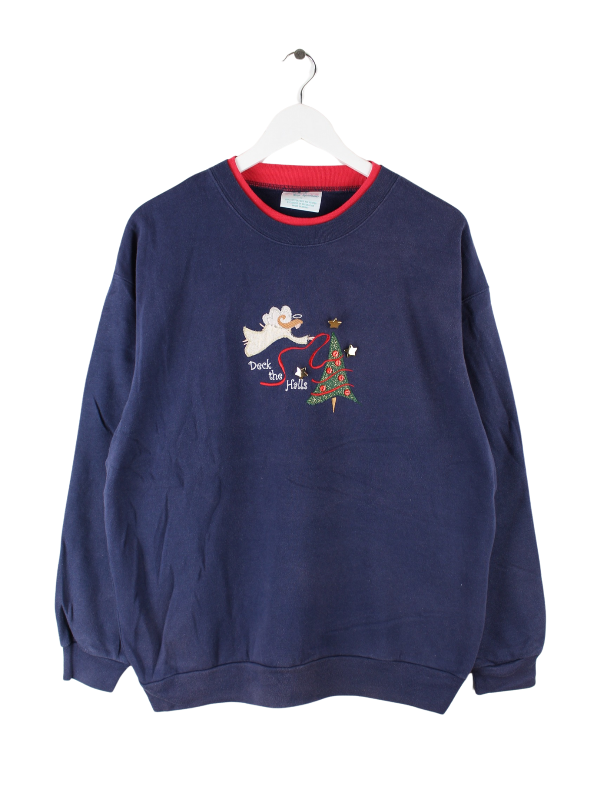 Vintage 90s Christmas Embroidered Sweater Blau L