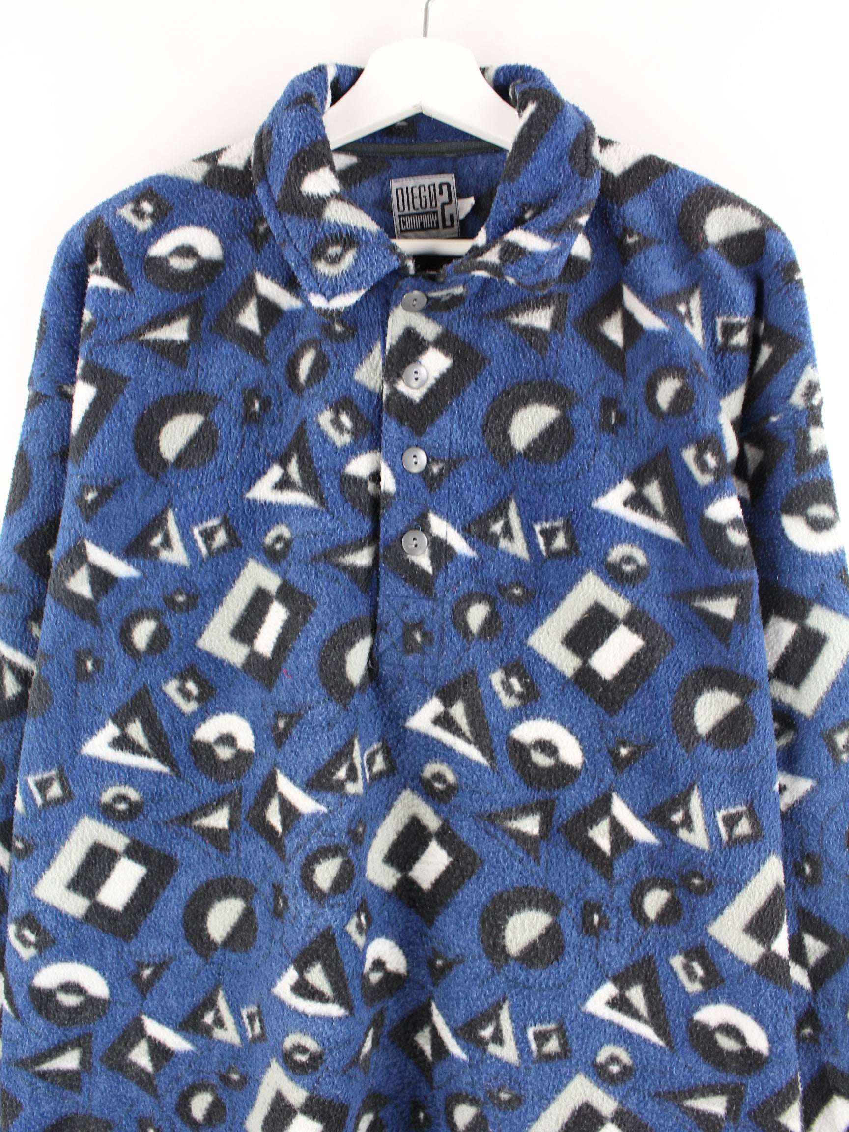 Vintage 90s Crazy Pattern Fleece Sweater Blue L
