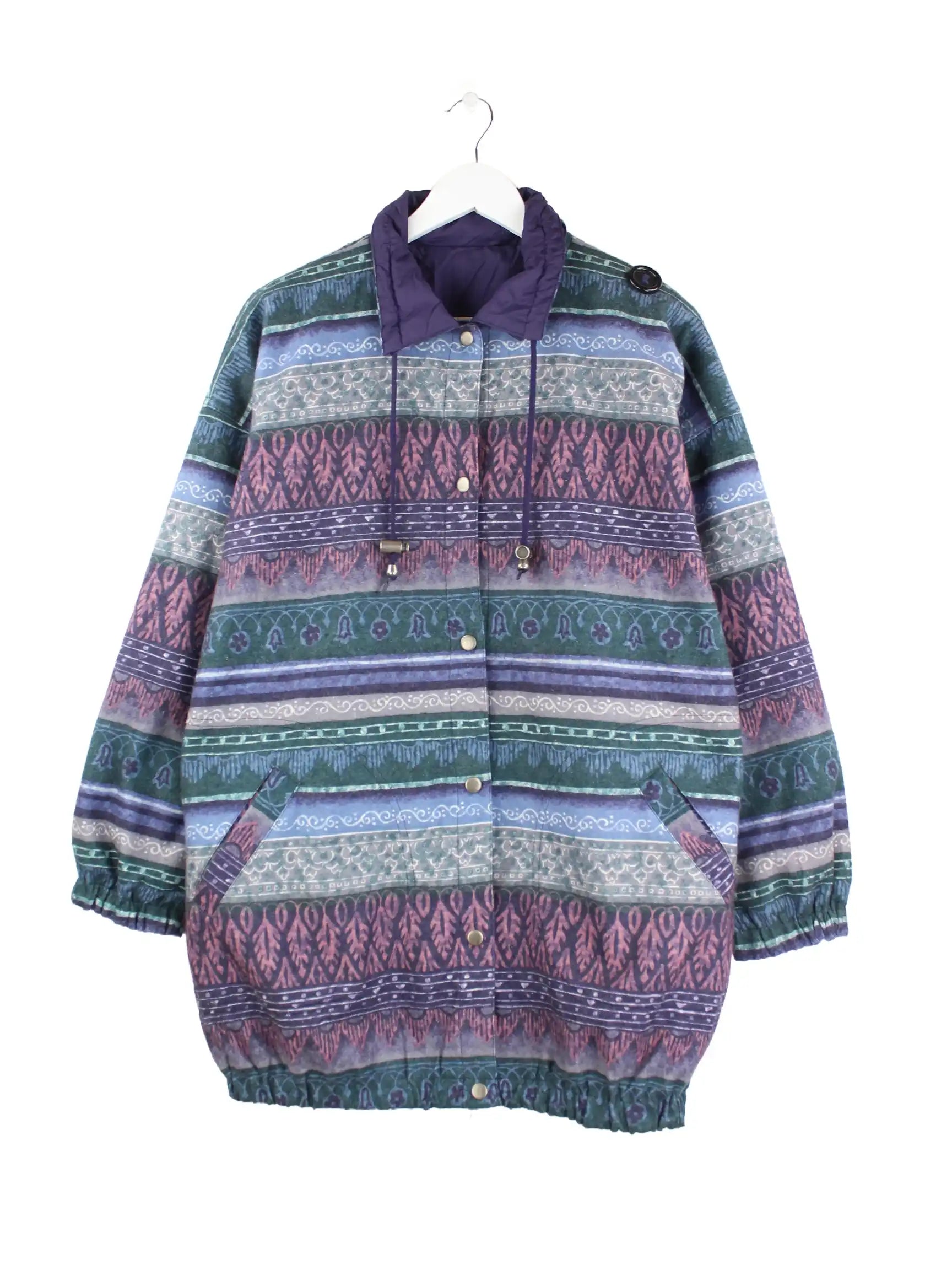 Mehrfarbige Vintage Leichte Jacke aus den 90'ern in Größe L. Sie ist aus Synthetik angefertigt und in sehr gutem Zustand vorrätig.
